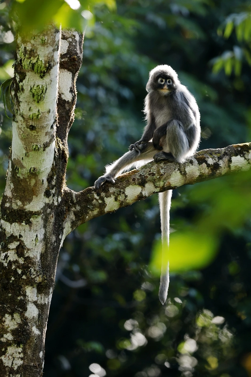 国家一级保护动物,毛色灰金相间,眼周有深色“眼影”,群体行动,生活在芒市周边山林。