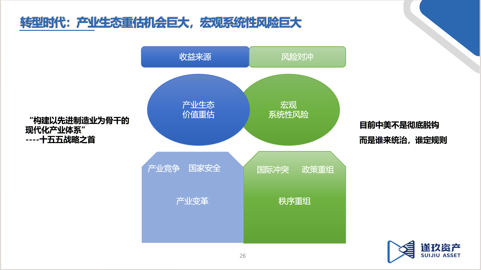 时代定位:中国资产的大航海时代来临,产业生态重构带来巨大的价值重估机遇,同时伴随宏观秩序重组、国际博弈等系统性风险。