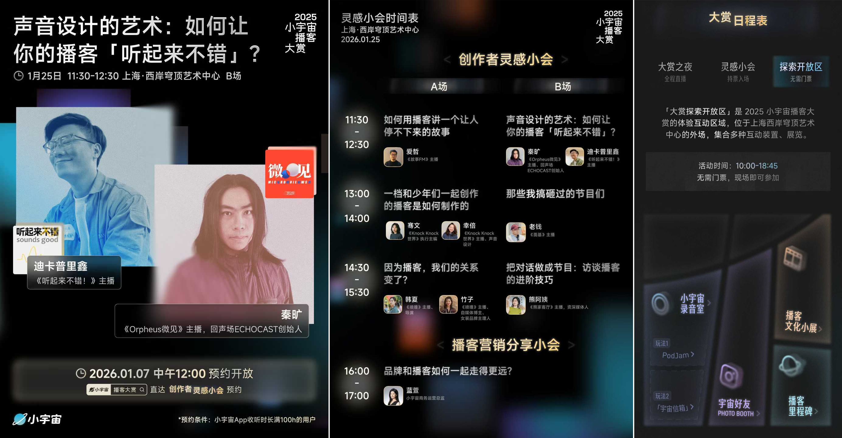 2025小宇宙播客大赏线下活动来了,微见会与听起来不错!一起,为大家分享播客制作和利用声音的另一面,欢迎关注。开放活动无需预约也可参与。