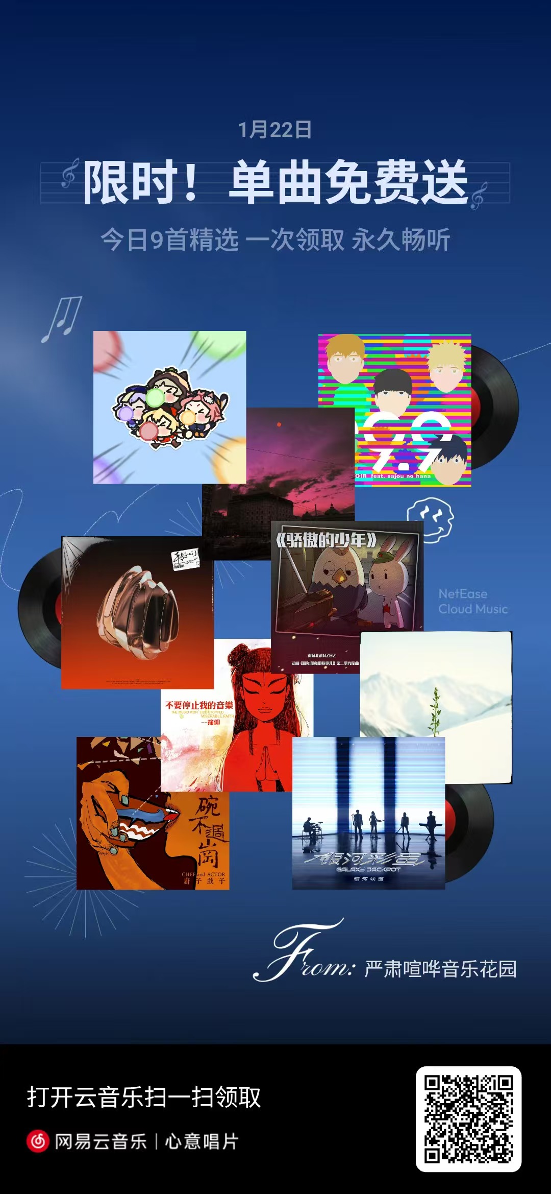 欢迎大家在【网易云音乐】搜索【严肃喧哗阅读歌单】。