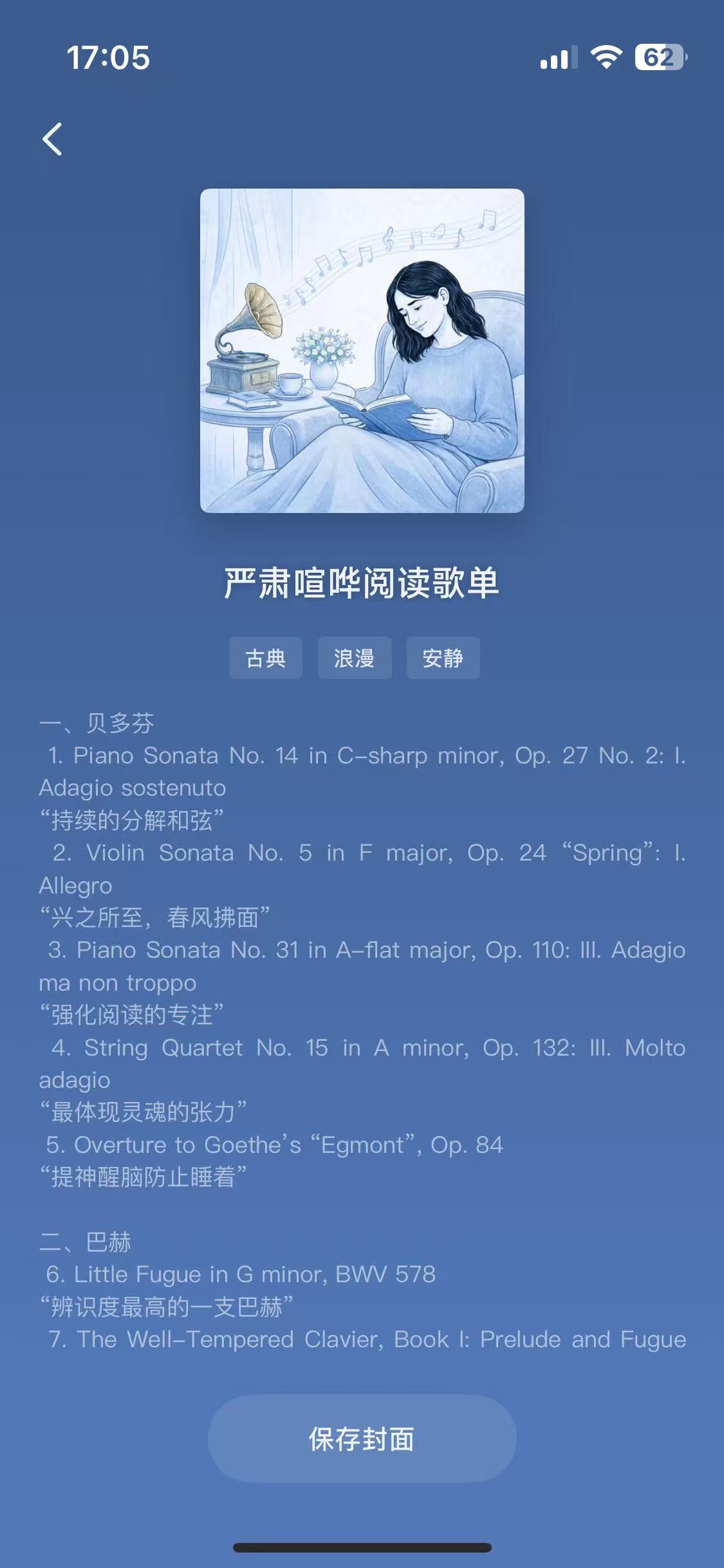 黑塞写入书里的音乐,充满流动感与远山淡影般的秩序感,是长时间阅读的最佳背景音乐。