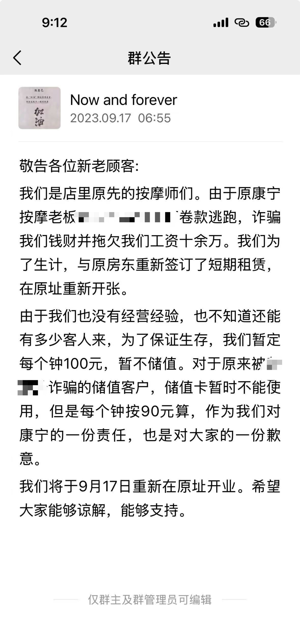 小虎和三位盲人师傅重组按摩院的群公告