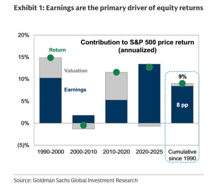 支撑这一判断的核心是盈利的持续走强。如研报中Exhibit 1(P2)所示,1990年以来,盈利贡献了标普500指数9%年化涨幅中的8个百分点,是股价上涨的绝对主力;Exhibit 2(P3)进一步显示,2025年标普500 16%的价格回报中14个百分点来自盈利增长,而2026年的目标同样依赖盈利的12%增速支撑。
