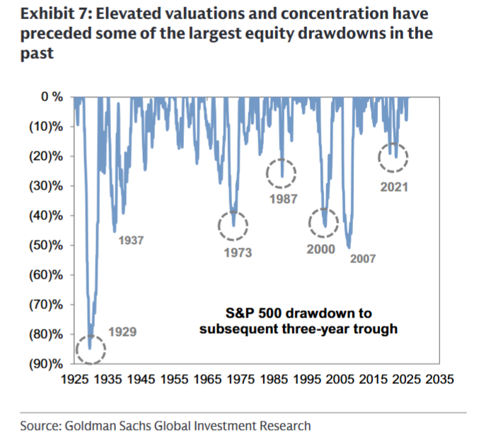 当前美股的关键矛盾在于强劲基本面与高估值的平衡。Exhibit 3(P4)显示,标普500当前前瞻市盈率为22倍,与2021年峰值持平,仅低于2000年历史高点2个百分点,但高盛认为,健康的经济增长与美联储宽松政策将支撑估值稳定。同时,市场集中度创下纪录,Exhibit 4(P5)显示,标普500前10大股票占市值41%、贡献2025年53%的回报(Exhibit 5/P6),这既带来了结构性机会,也增加了市场对龙头股表现的依赖。