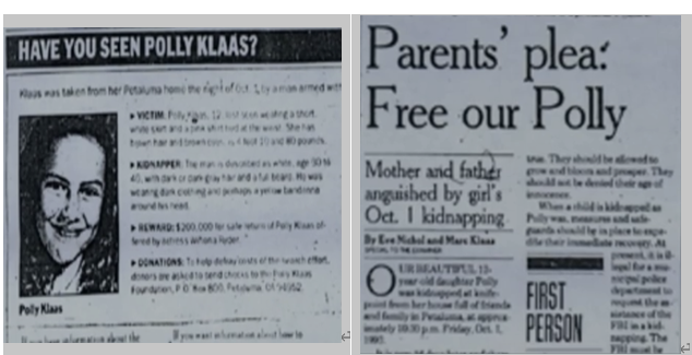 12岁的小女孩PollyKlaas在一个周末的夜晚被人从家中当着两个朋友的面绑走。她的失踪牵动了全美国人民的心,并且推动了加州乃至整个美国《三振出局法》的出台和后来持续至今的法案改革。