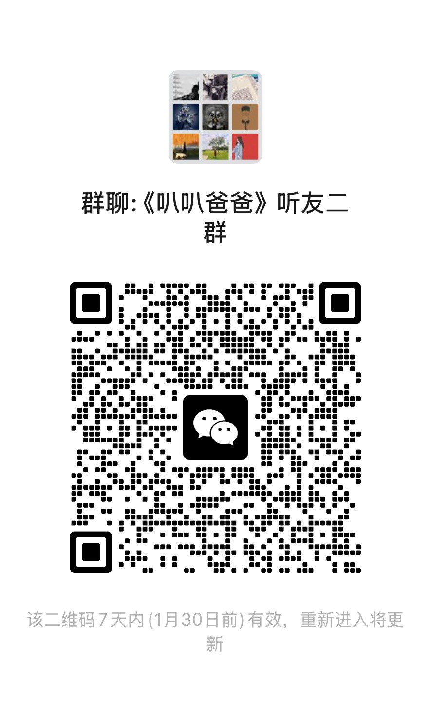 今天是主播乐乐惨痛陈述自己青春期的一期节目,希望通过她的讲述,让我们每个做家长的可以有所警惕和醒悟,欢迎收听!本期主播:Jumper,贾老板,乐乐,老蔡扫描下图二维码,加入《叭叭爸爸》微信群,一起缓解育儿焦虑吧!