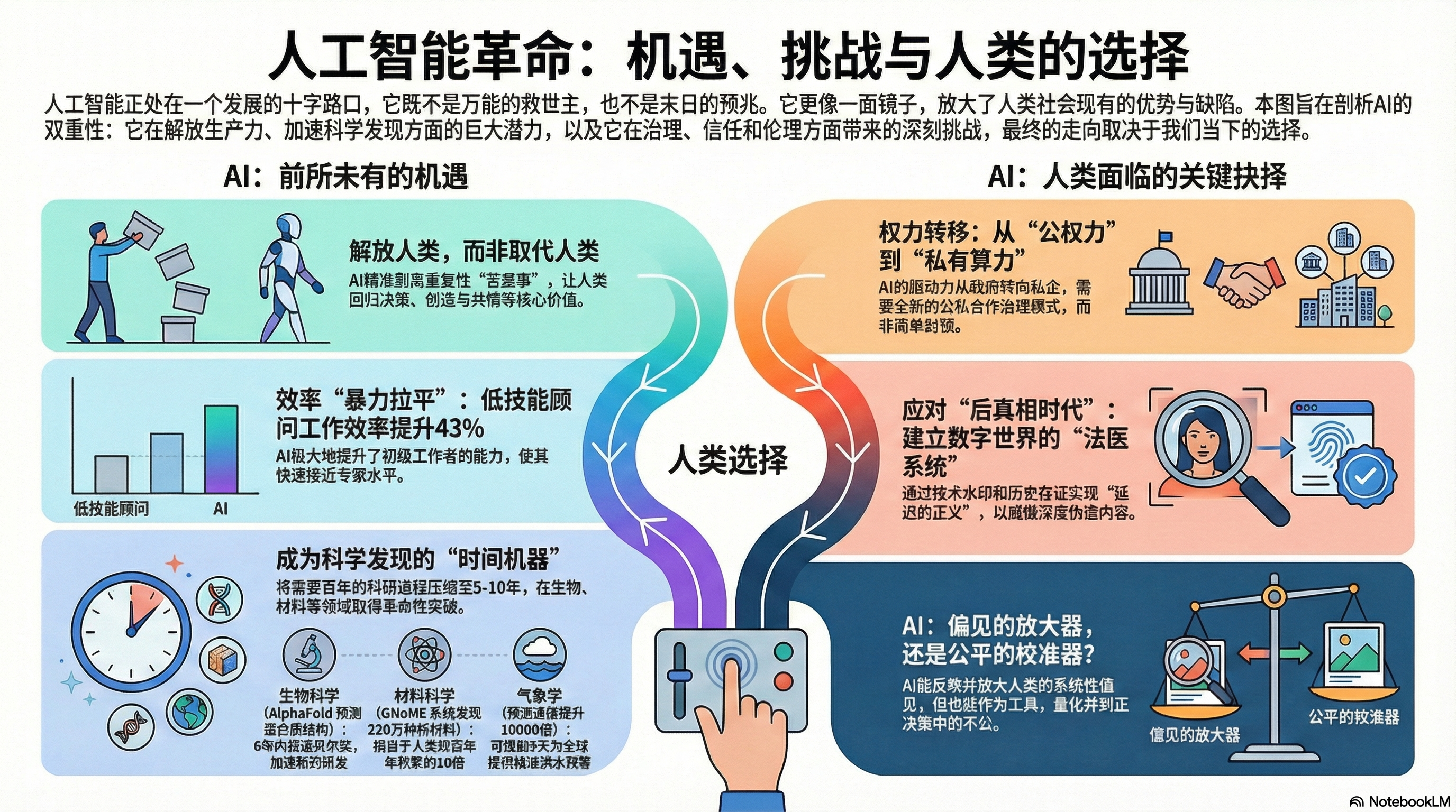 从医疗误诊、教育平权,到科研“时间机器”、经济超增长,再到深度伪造、法律责任与社会安全网——这是一期试图回答一个根本问题的节目:在 AI 时代,人类到底该如何继续成为“决策回路中的最后一环”?如果你已经厌倦了非黑即白的 AI 争论,想弄清楚我们究竟身处历史的哪一个坐标点,这一期,或许值得你完整听完。