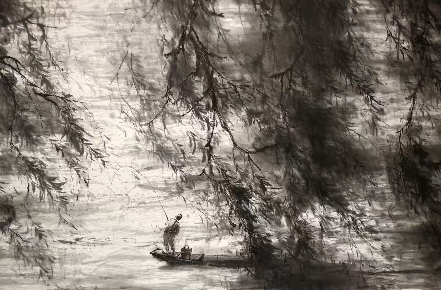 袁柳军作品(如西湖系列)引入光影,受西画与摄影启发。