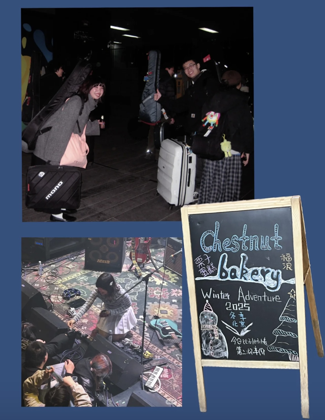 我们聊到了乐队最初的相遇,聊朋友、演出、酸菜摇滚,也聊那些一闪而过、却长久留下的旋律和片段。有黑胶店的偶遇,有伦敦livehouse的粘地板,有南方城市的chill演出,也有关于煲汤、瑞士小吃与咖啡馆的生活日记。