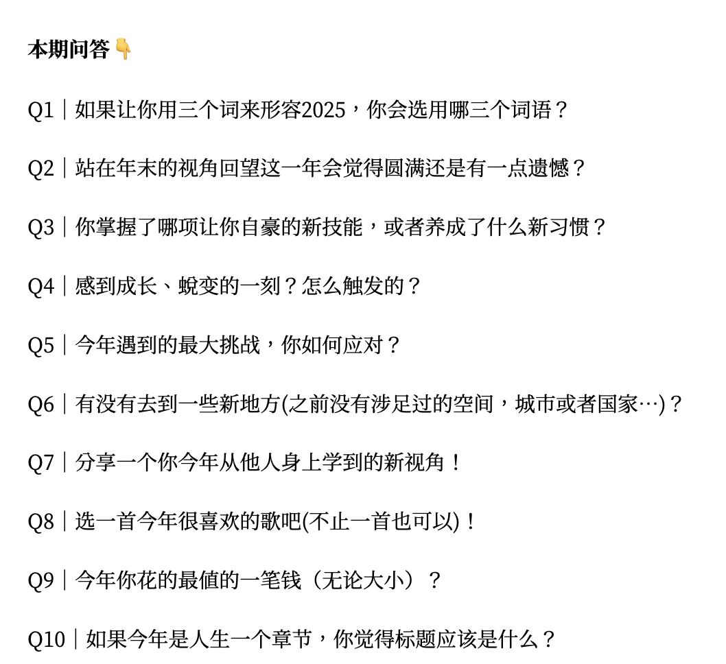 用20个问题,回答2025~这是向自己更向大家的内心发问的一期,问题的答案里,也许藏着你的未来地图🗺️