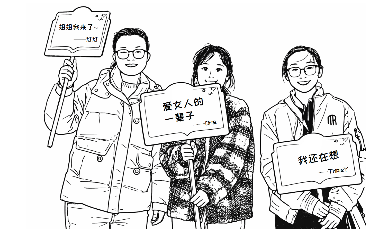 以及先来一张全家福:灯灯(左)Oria(中)TripleY(右)