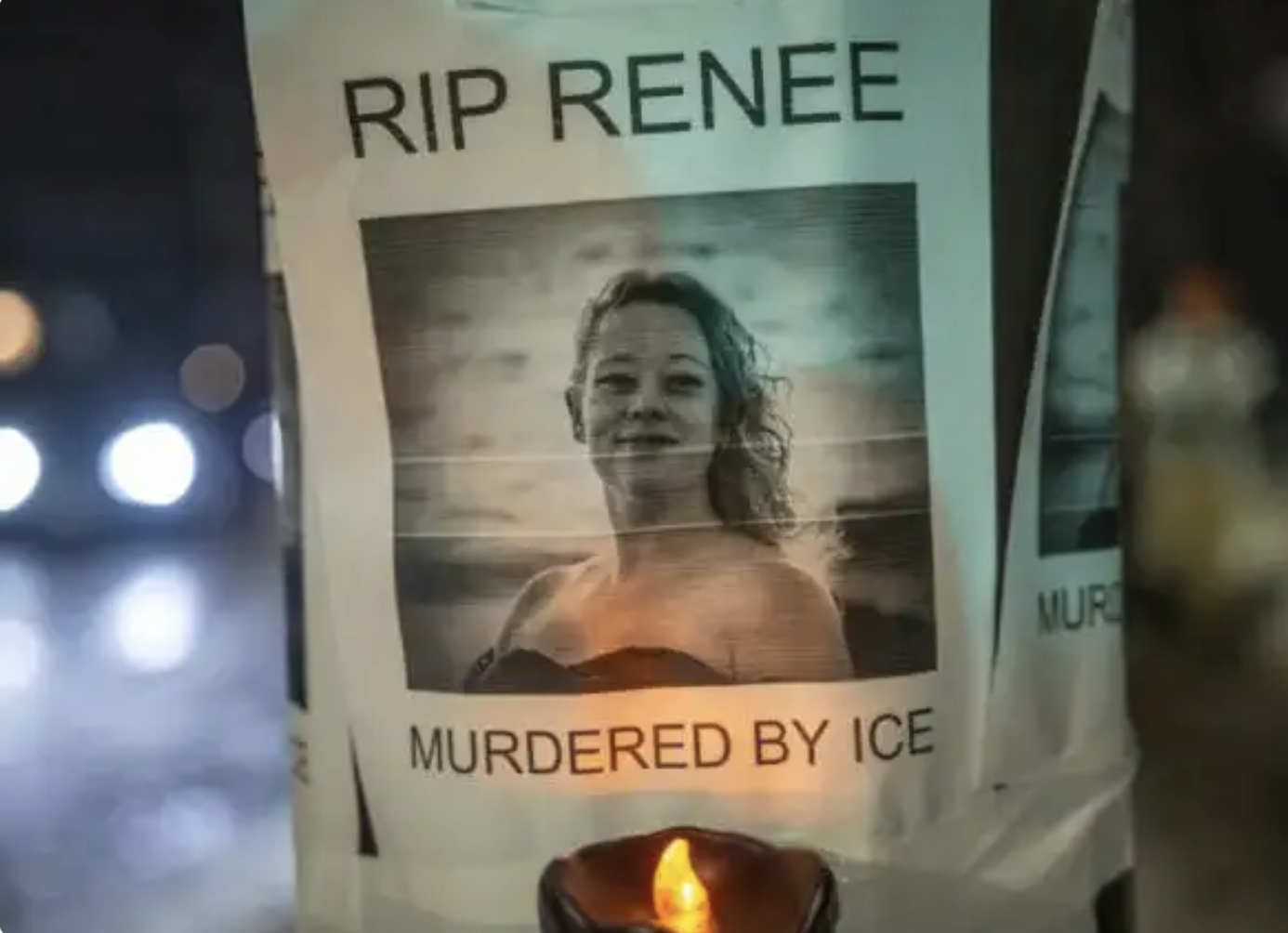 这名三个孩子的母亲的照片被张贴在明尼阿波利斯的街道上,照片中她一头金发,面带微笑。照片上写着“被ICE谋杀”。
