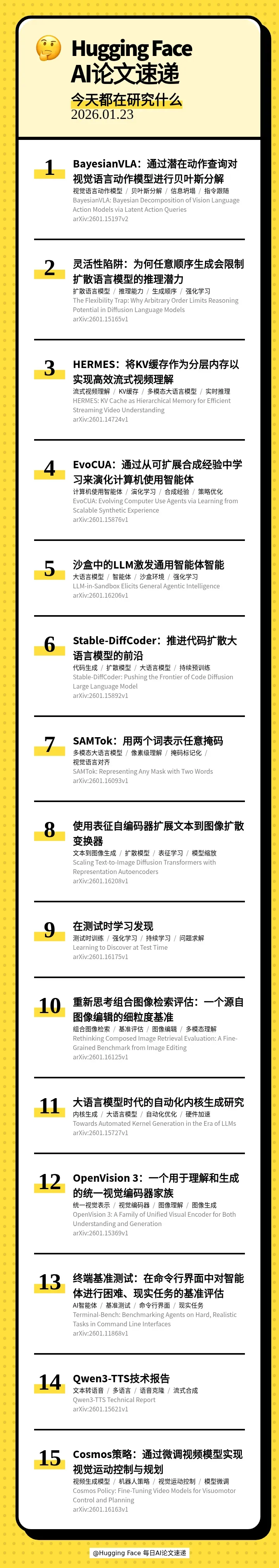 00:32 🤖 BayesianVLA: Bayesian Decomposition of Vision Language Action Models via Latent Action Queries(BayesianVLA:通过潜在动作查询对视觉语言动作模型进行贝叶斯分解)