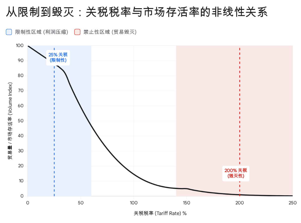 图二: 根据Armington Model测算的一个关税与需求曲线的区间值