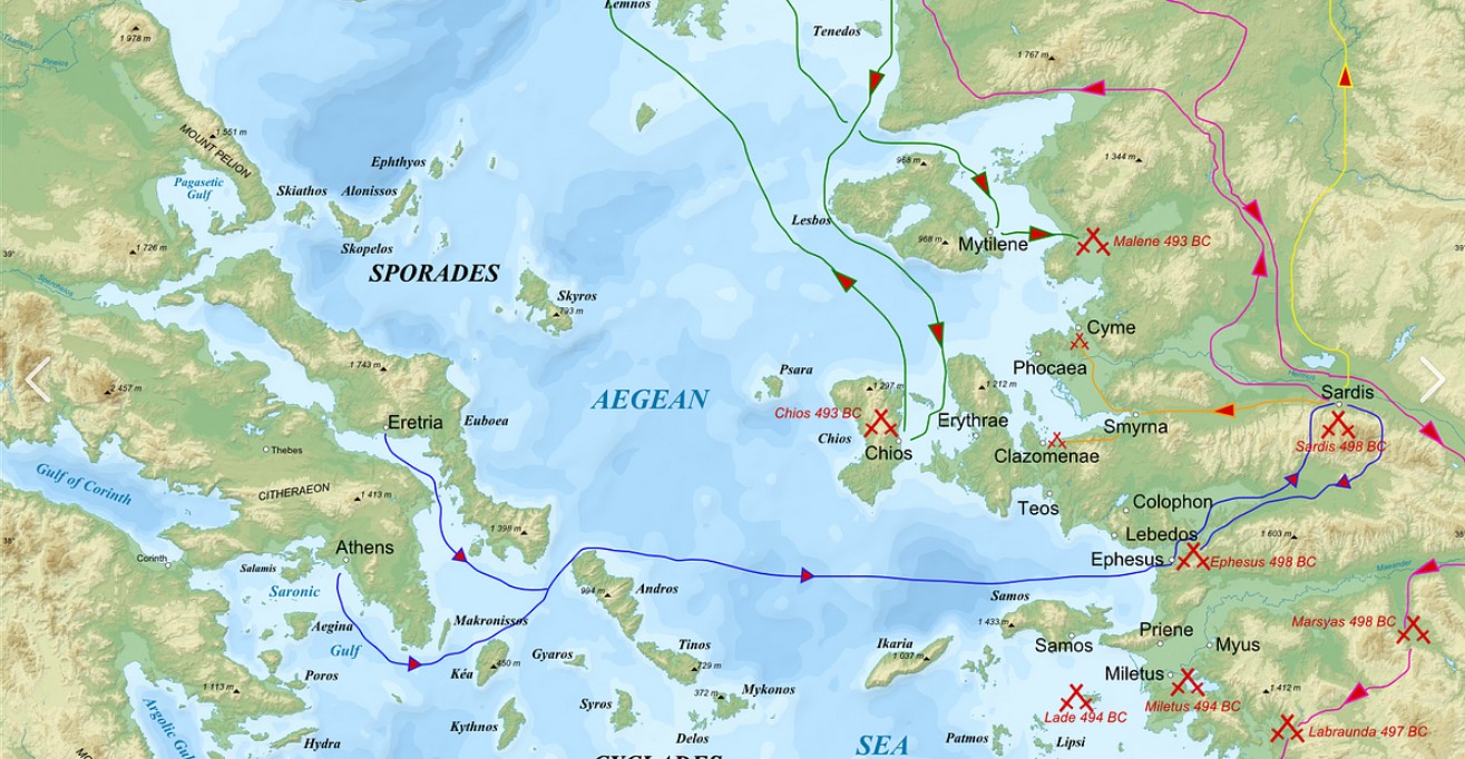这个导火索如约而至,就是位于小亚细亚沿岸的希腊人建立的移民城邦的民众揭竿而起,反抗波斯统治的暴动,史称爱奥尼亚人起义。