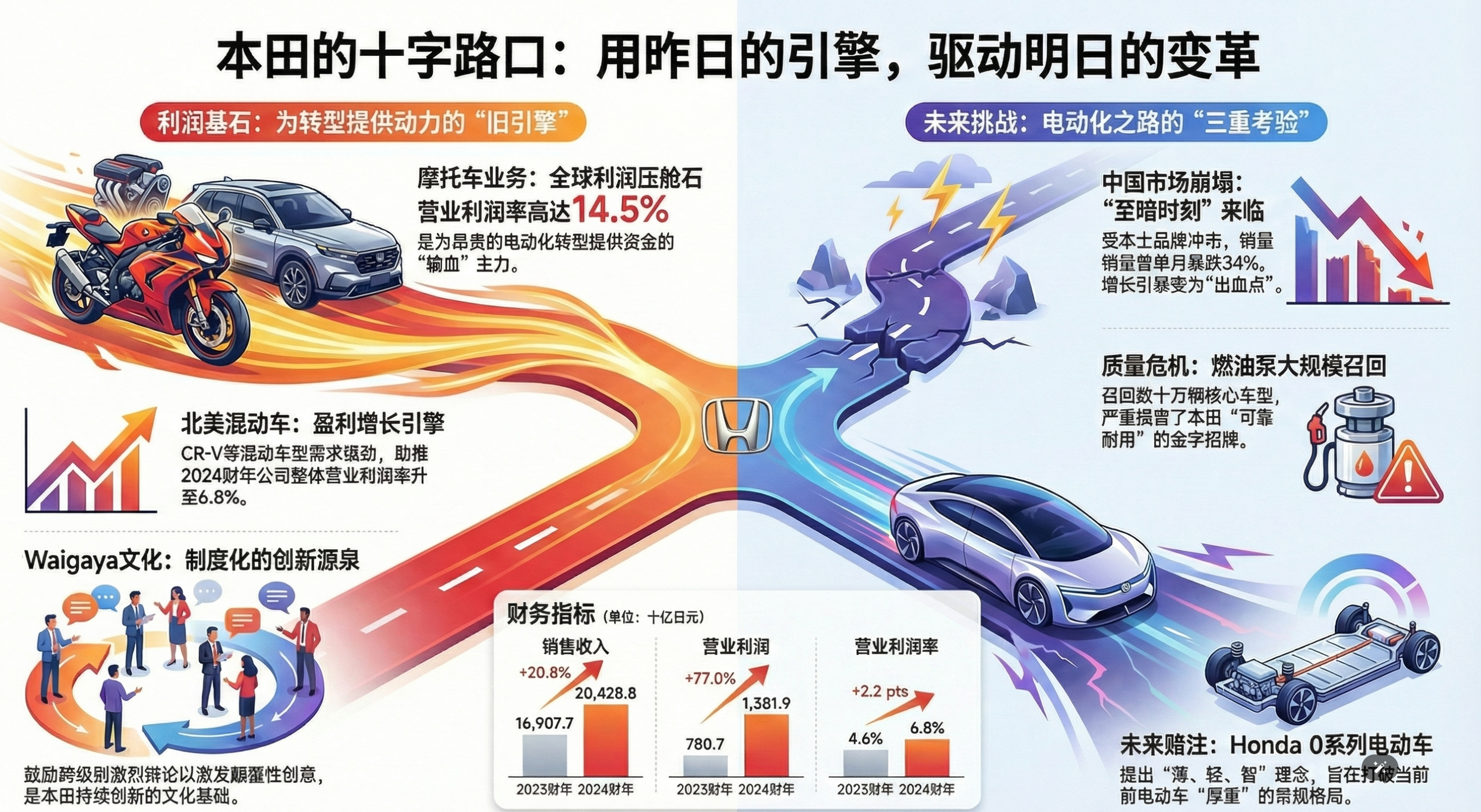 - 核心议题:面对电动化浪潮,本田需要利用燃油车业务的利润来支持电动车业务的投入。