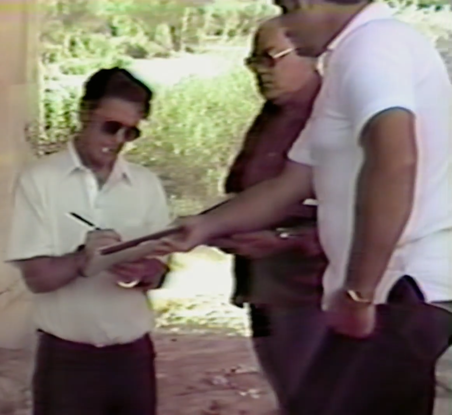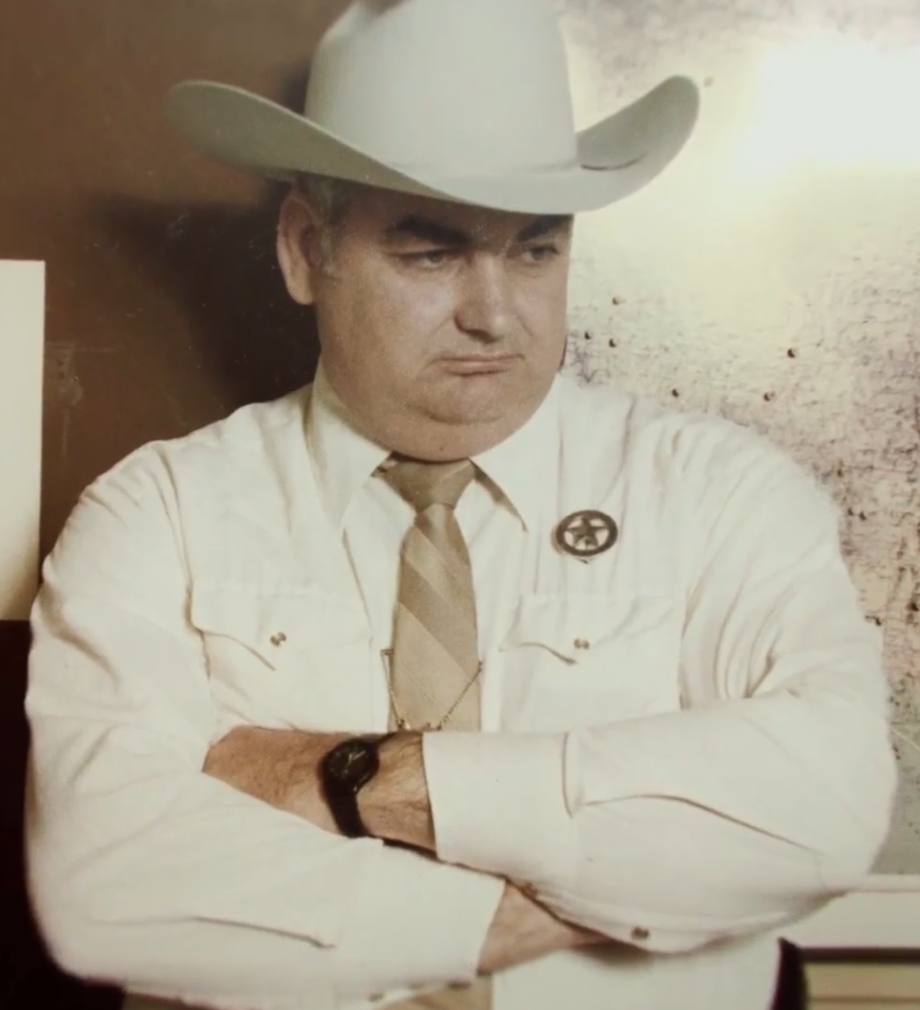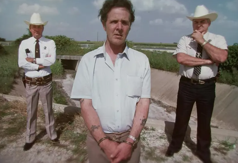-亨利·李·卢卡斯(Henry Lee Lucas)和专案组警长:吉姆・布特威尔(Jim Boutwell)、骑警:鲍勃・普林斯(Bob Prince)在罪案现场-
