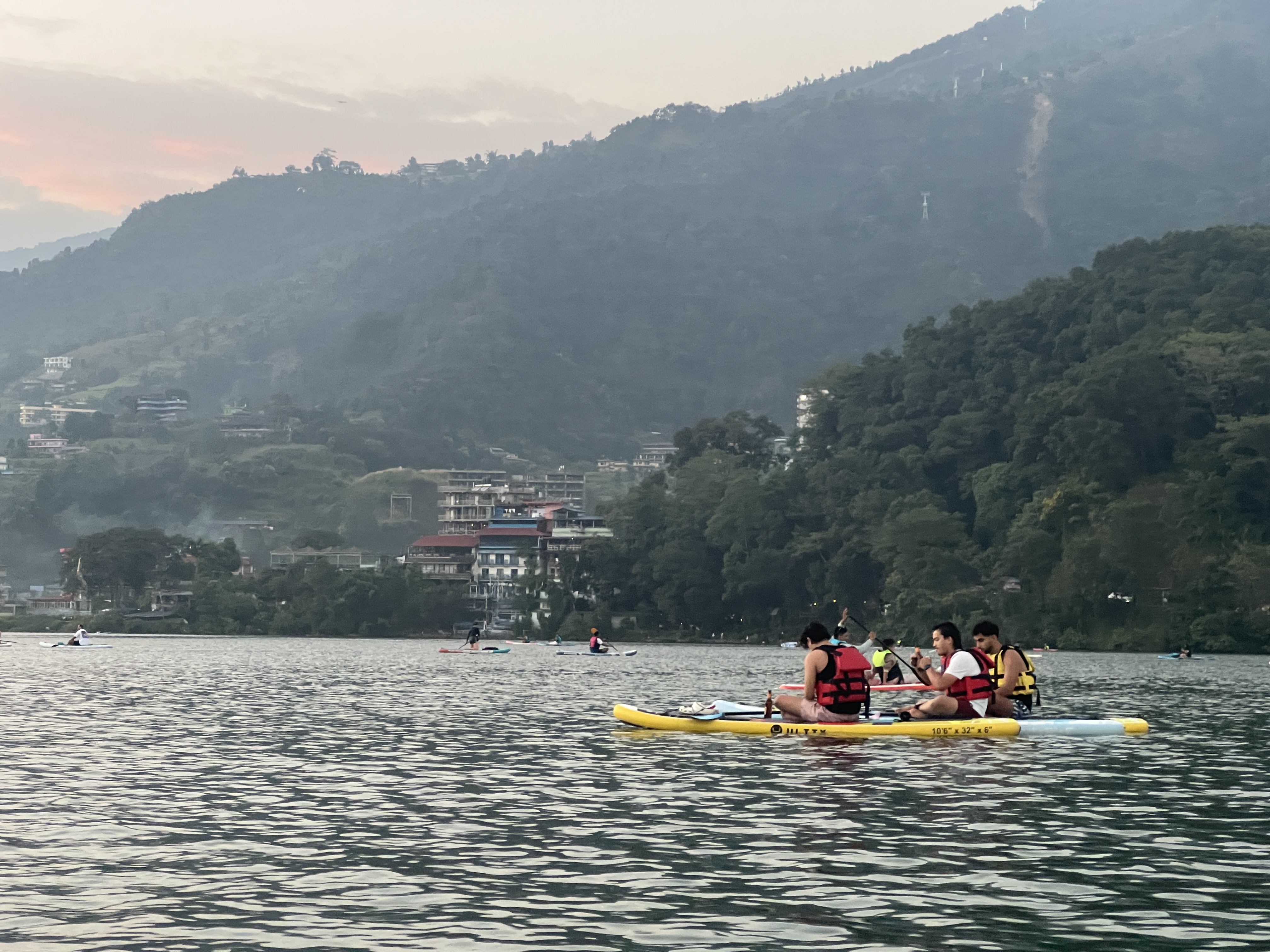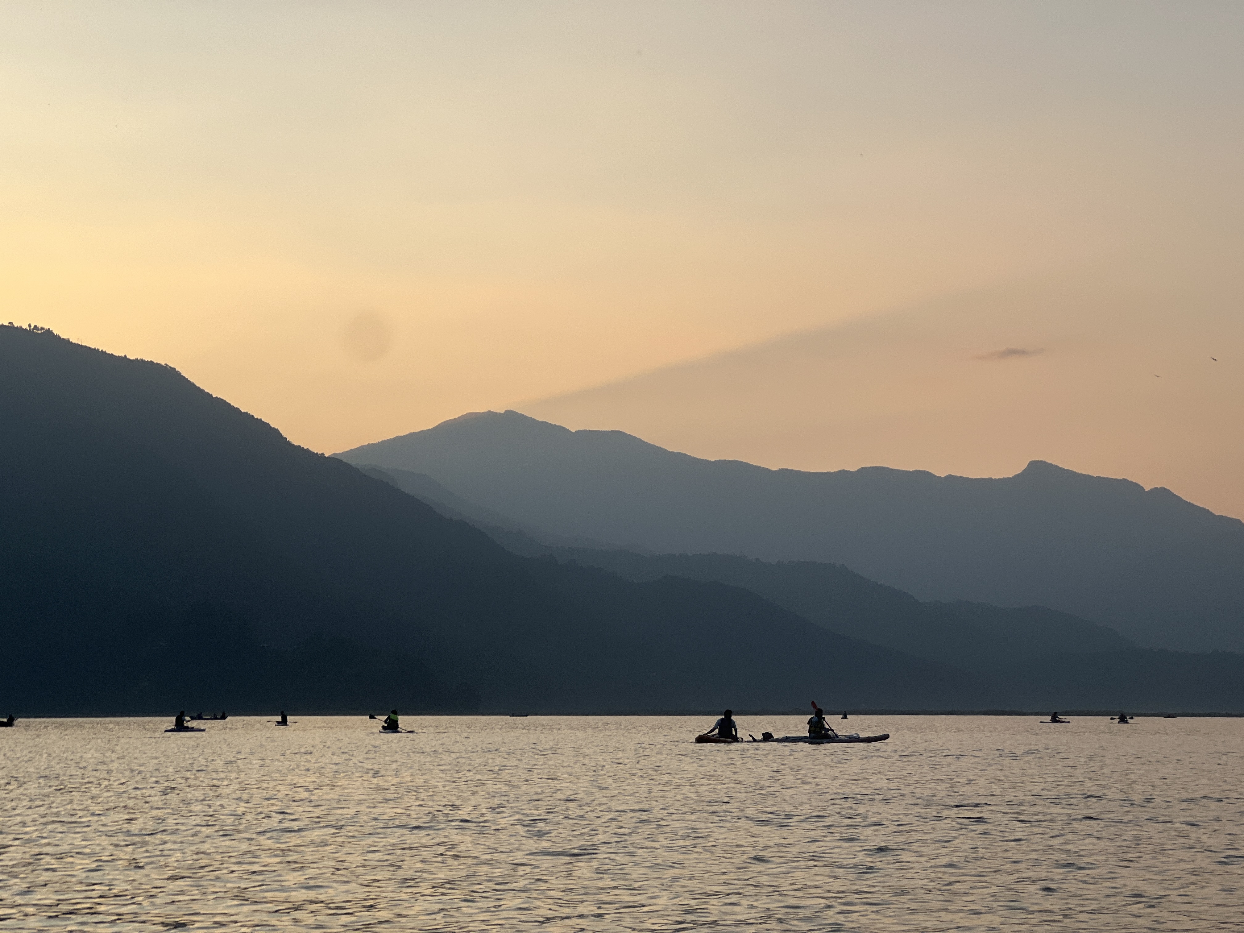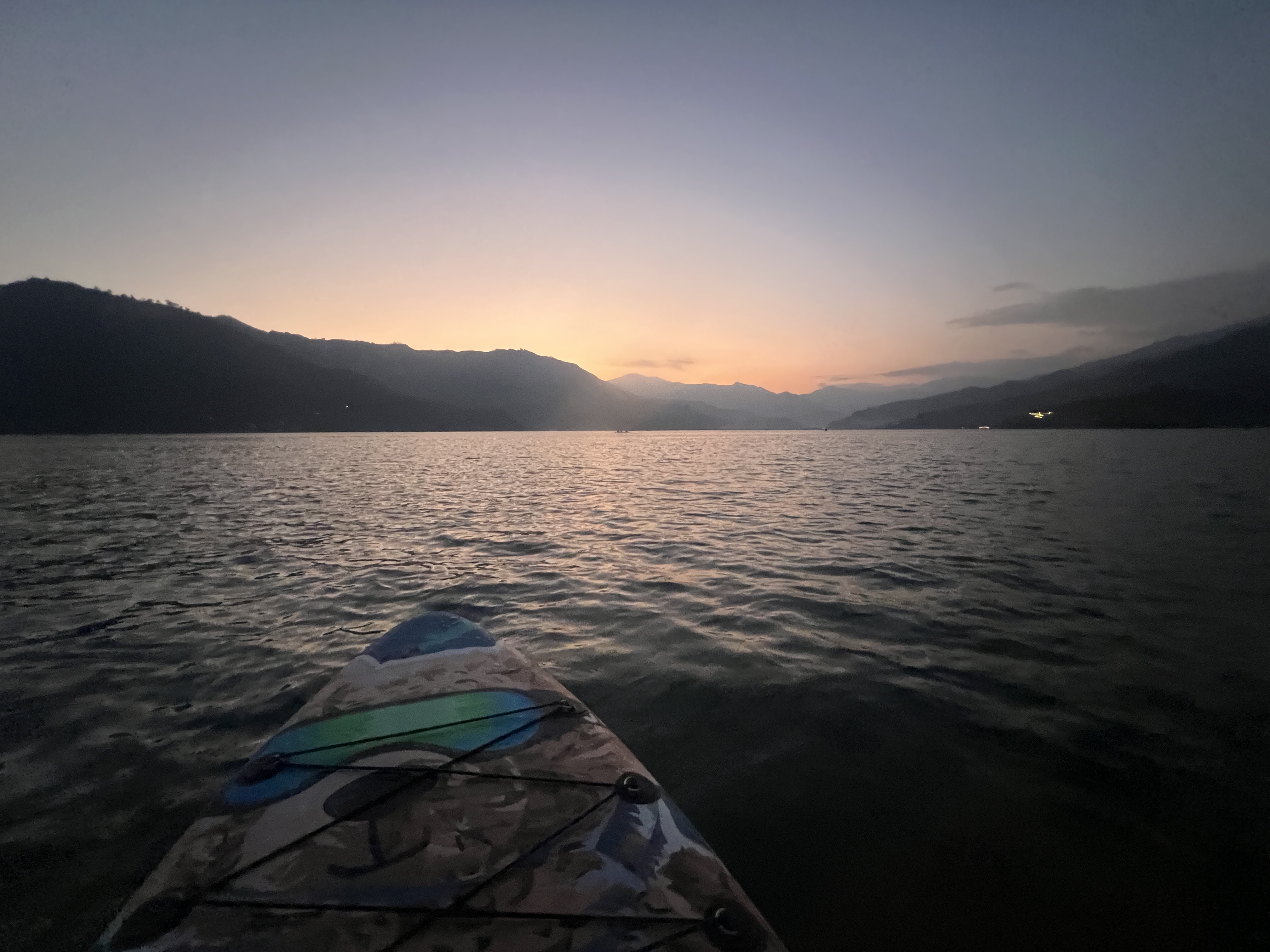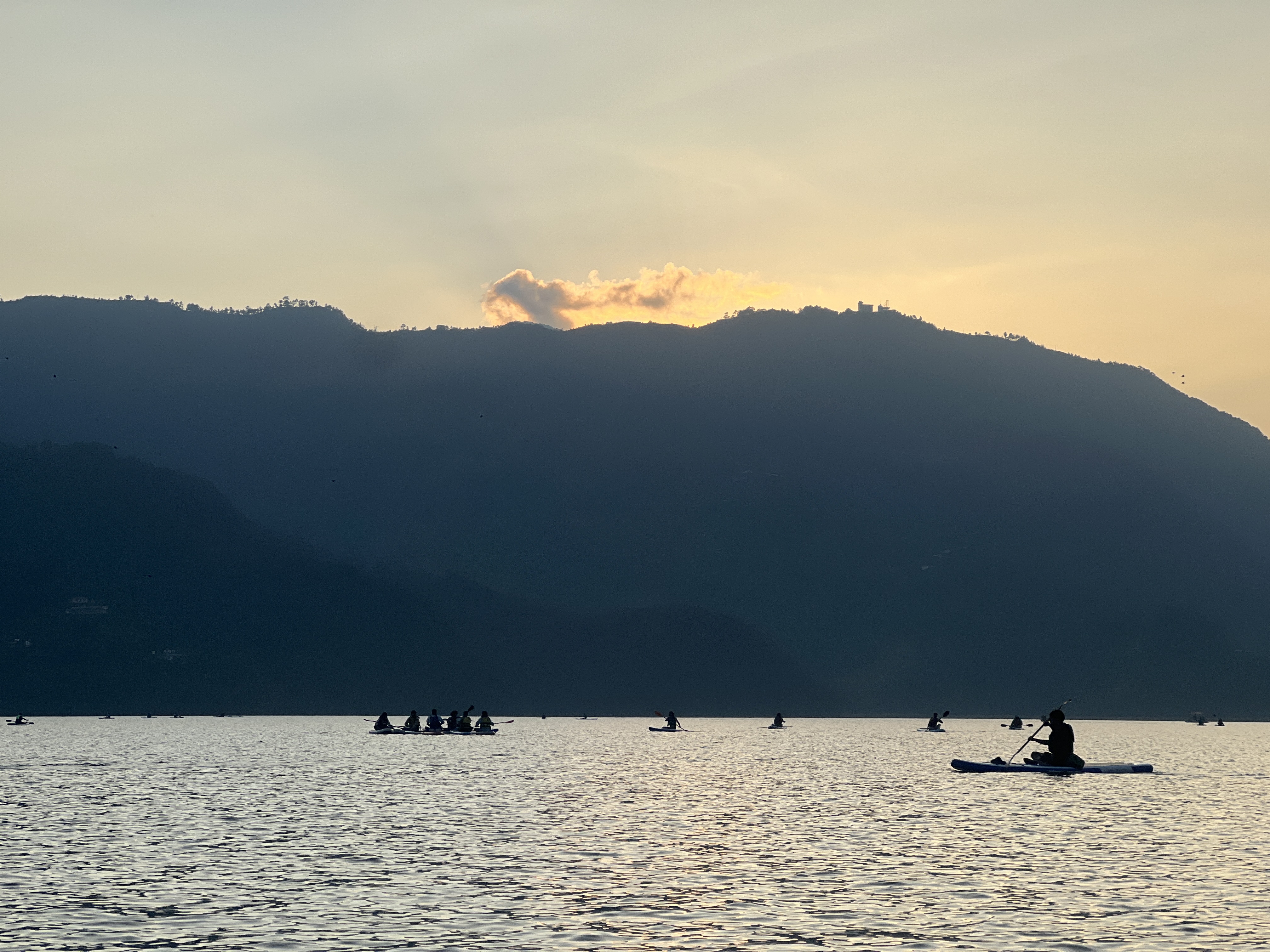 32:07 在夕阳西下的费瓦湖上第一次玩浆板