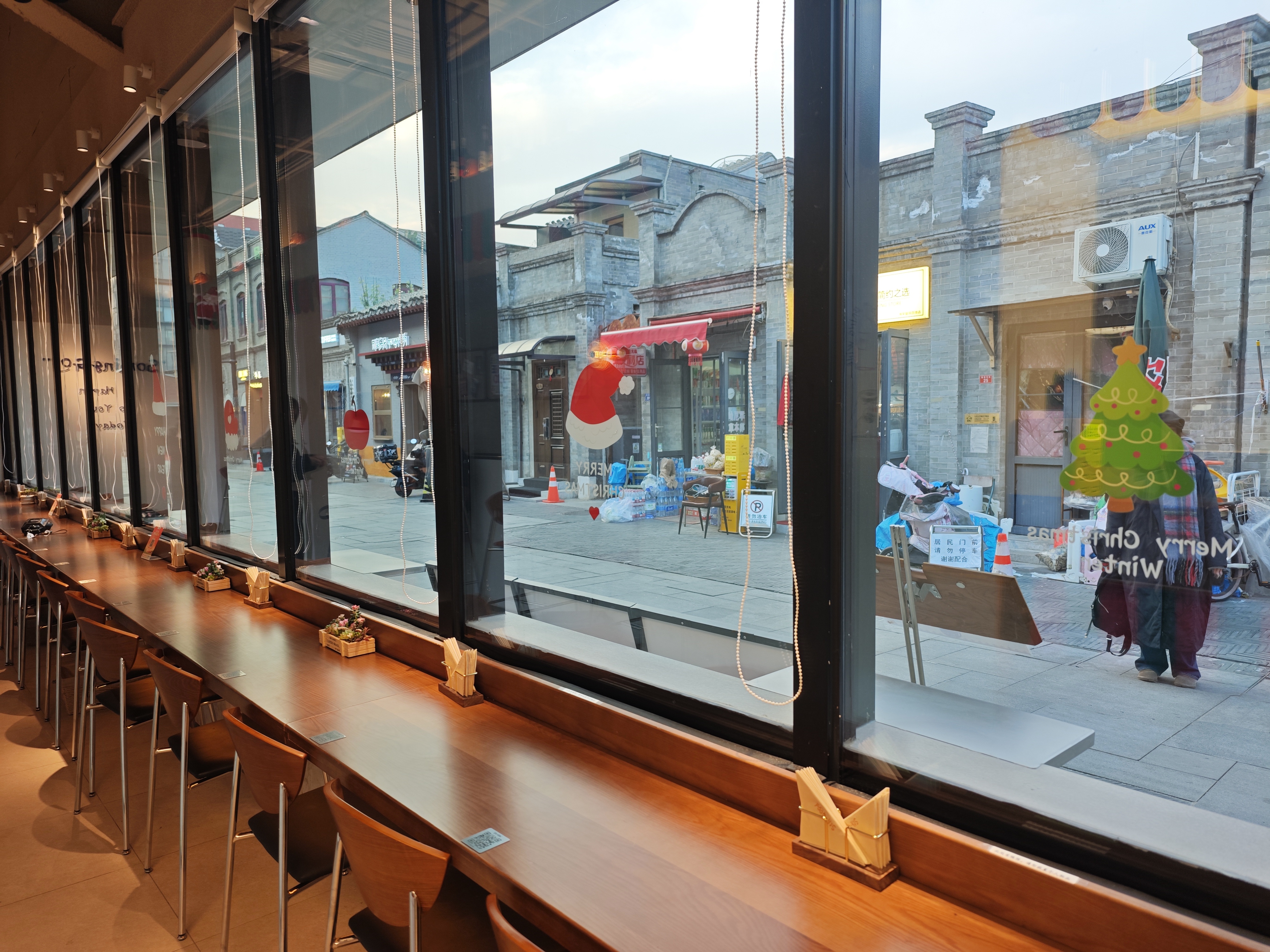 (店里有这样临街的座位,也有可以聚餐的位置)