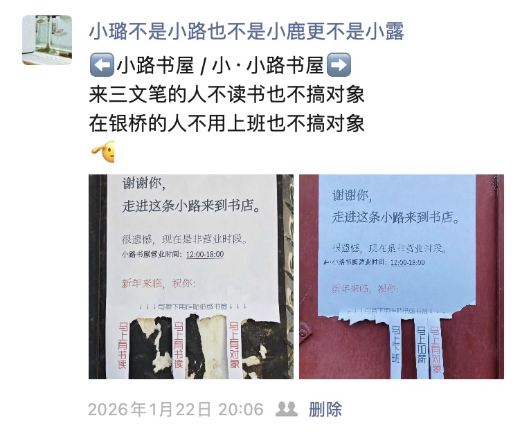27:06 小路书屋&小·小路书屋门口的纸条: