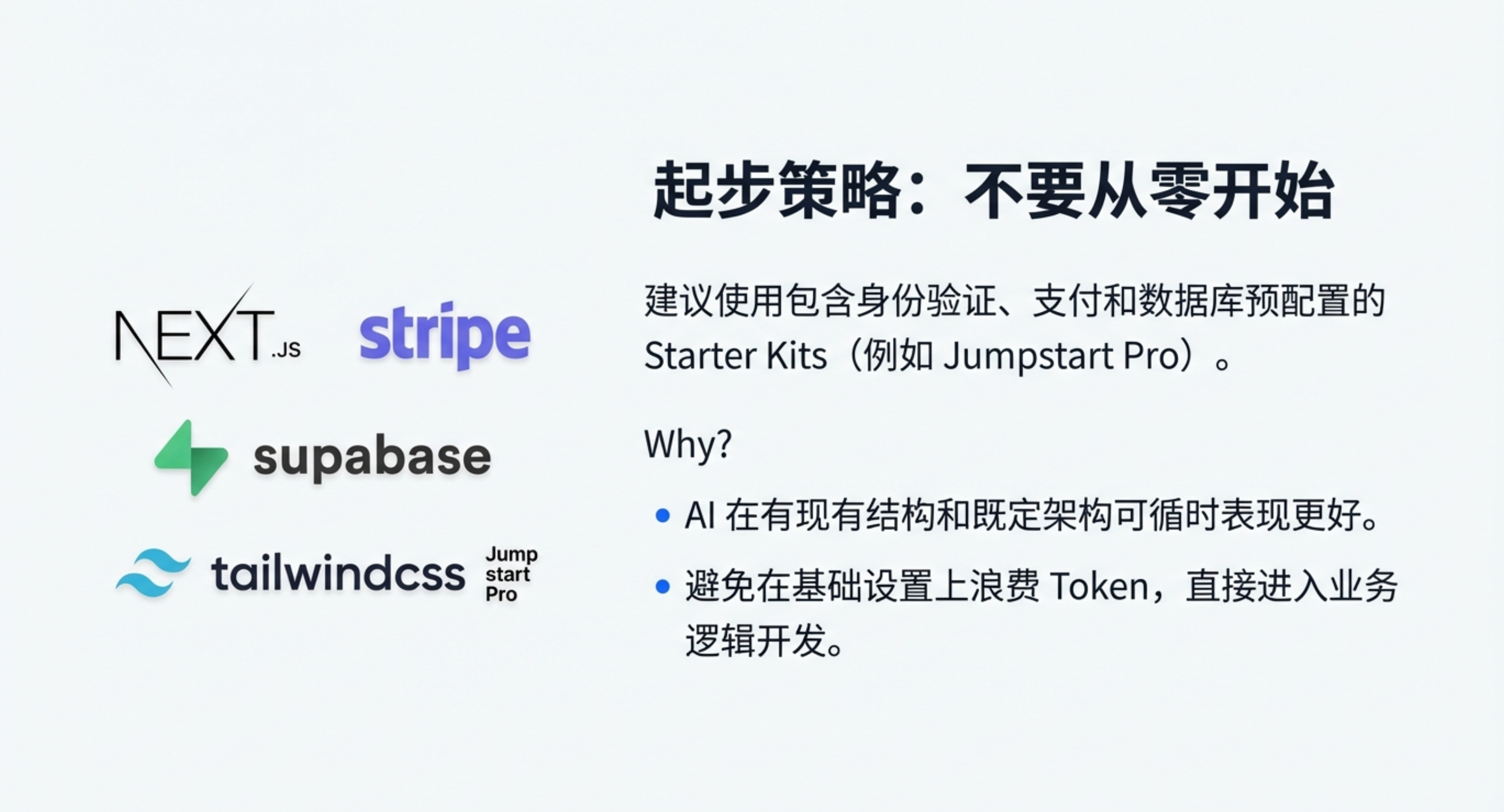 - 善用启动模板:直接基于成熟的启动项目(如 Jumpstart Pro)开始开发,能为AI提供明确的技术栈边界和最佳实践参考,避免在基础决策上浪费时间。
