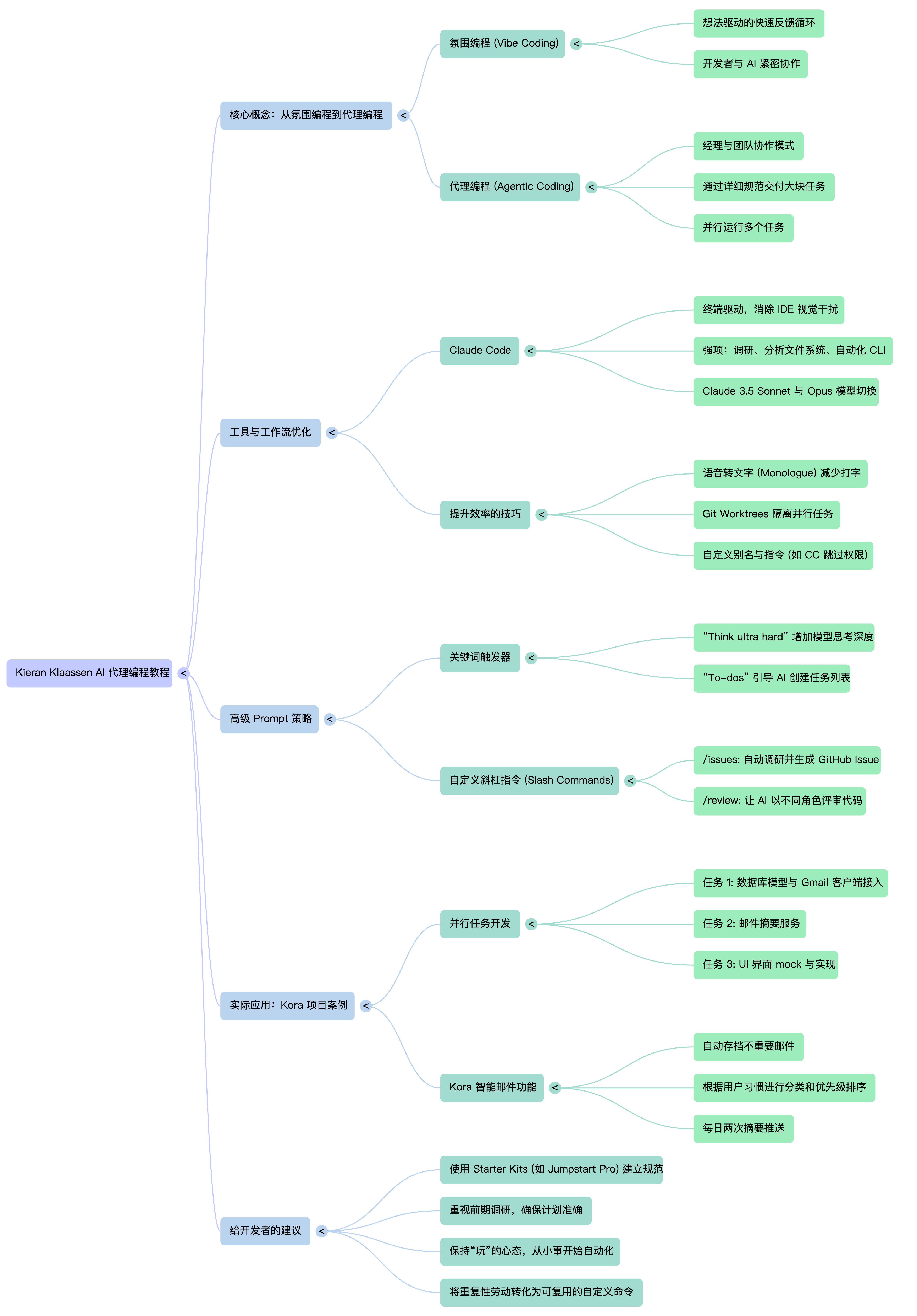 在这期分享中,Klaassen 彻底颠覆了传统的“氛围编程”模式。他将展示如何通过 Claude Code,像项目经理一样并行驱动多个 AI 智能体,让它们同时负责研究、架构设计和界面开发。你将学到如何用“工作树”避免代码冲突、如何设计有效的触发词和自定义命令来规模化你的工作流,以及如何构建一个能自动处理邮件的 AI 助手 Kora。如果你渴望将 AI 从“高级打字员”转变为能独立交付成果的“资深同事”,这期节目就是你向“智能体化编程”范式跃迁的实战手册。