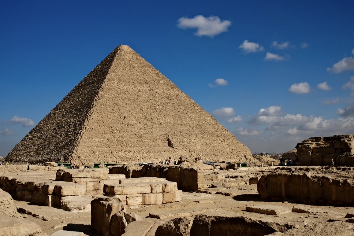 胡夫金字塔(右)和哈夫拉金字塔(左)