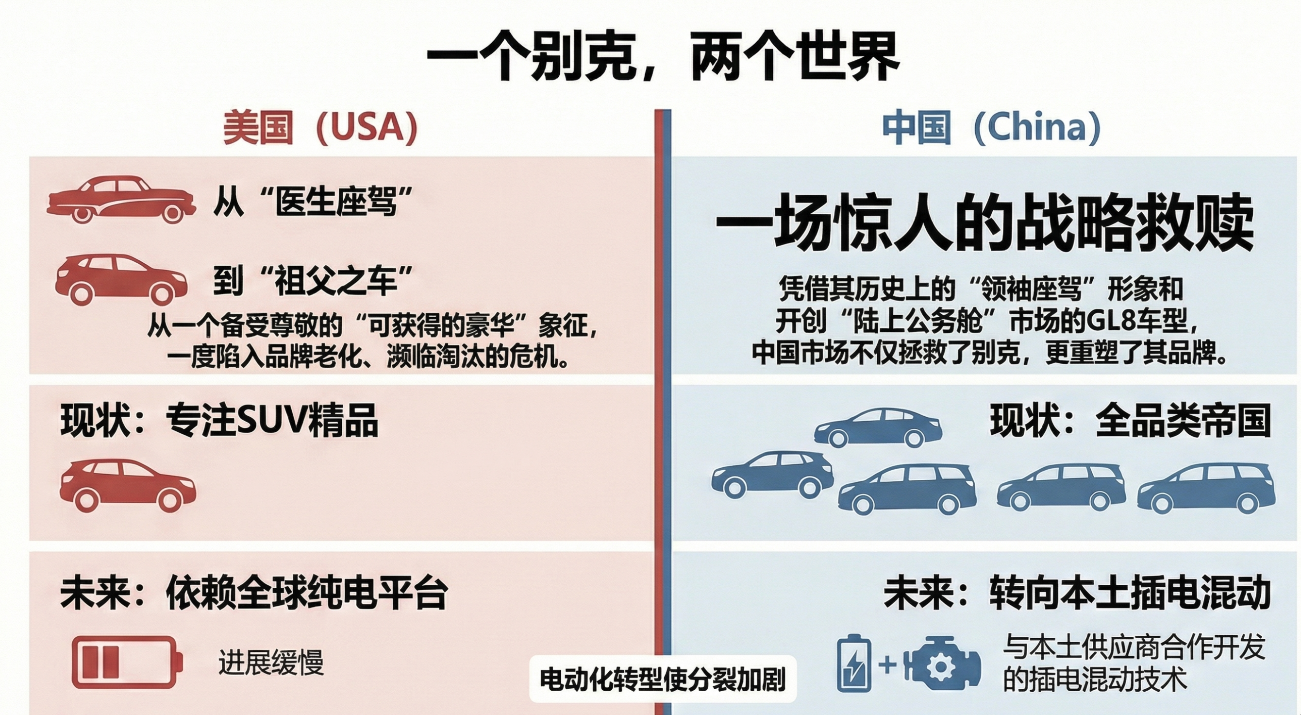 - 别克在美国市场转型为只卖SUV,形成“一个品牌,两种存在”的双轨制奇观。