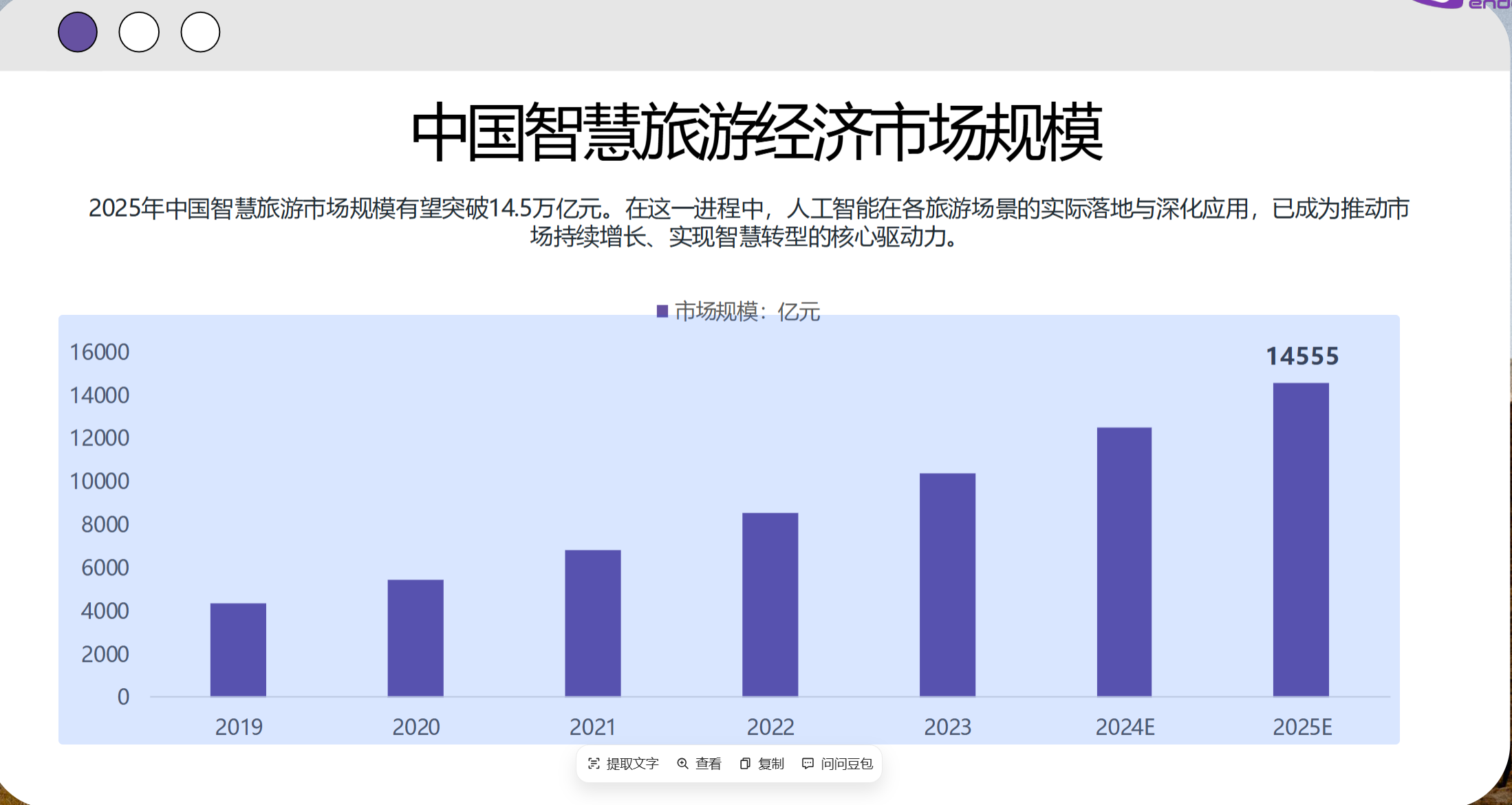 被很多人看作“锦上添花”的AI+旅游,早已不是概念炒作,而是撑起万亿市场的核心引擎。艺恩2026年《智旅新纪元:AI与旅游产业融合全景报告》用硬核数据证明,2025年中国智慧旅游市场规模将突破14.5万亿元,而AI正是这场产业变革的关键推手。