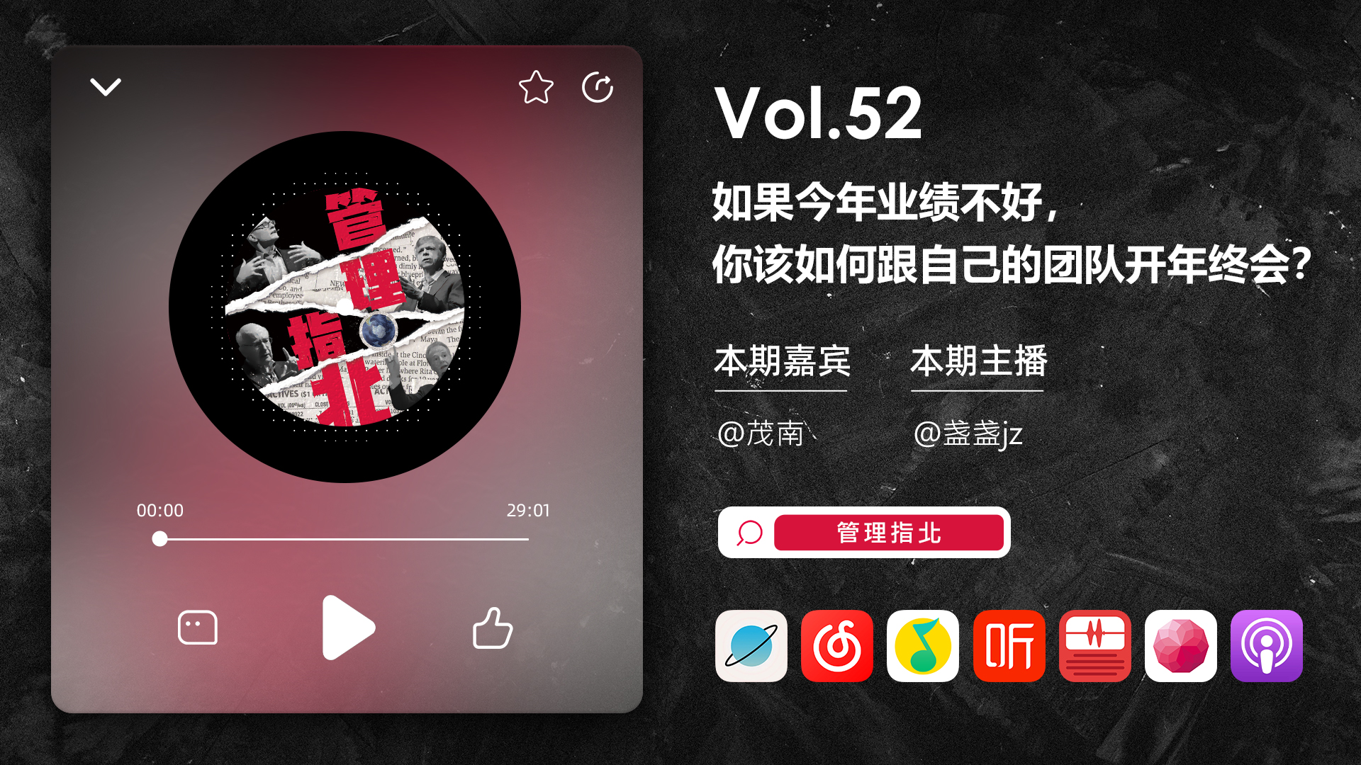 《管理指北》是一档唠「管理」话题的泛职场播客节目。让我们共话那些「管理」的阵痛与高光。每两周周一晚更新,欢迎你的订阅~
