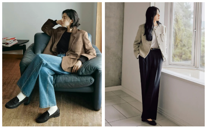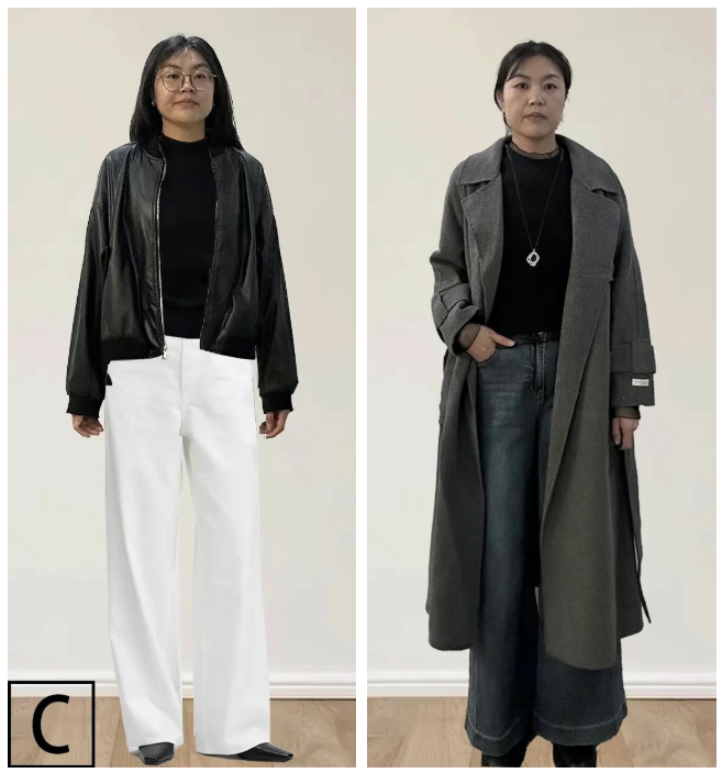 这里可以用她原有的阔腿牛仔裤进行搭配