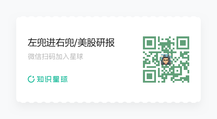 如需获得更多及时研报、英文原文,欢迎加入我们的付费知识星球《左兜进右兜/美股研报》