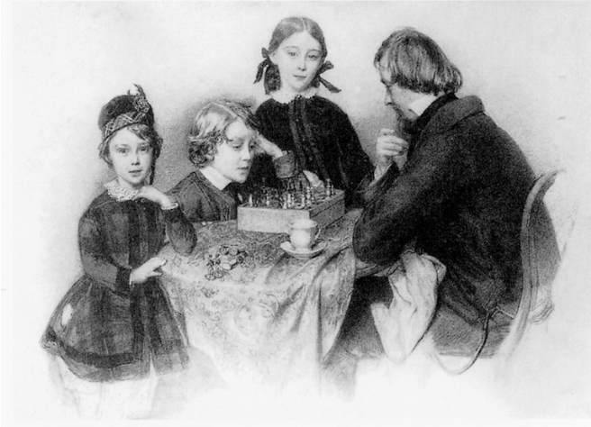 Pieter Baumgaertner, Robert Cassatt and his Children, 1854, Mary Cassatt standing centre