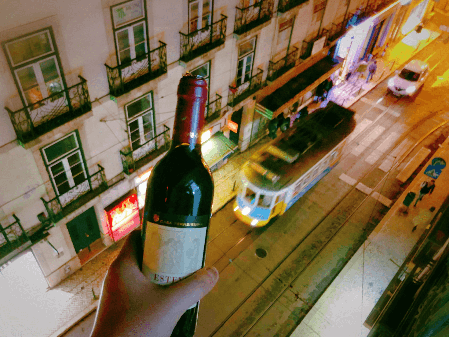 晚上回到Airbnb,站在能看到黄色有轨电车的露天阳台上,举起一整瓶红酒,跟我喜欢的里斯本干杯!