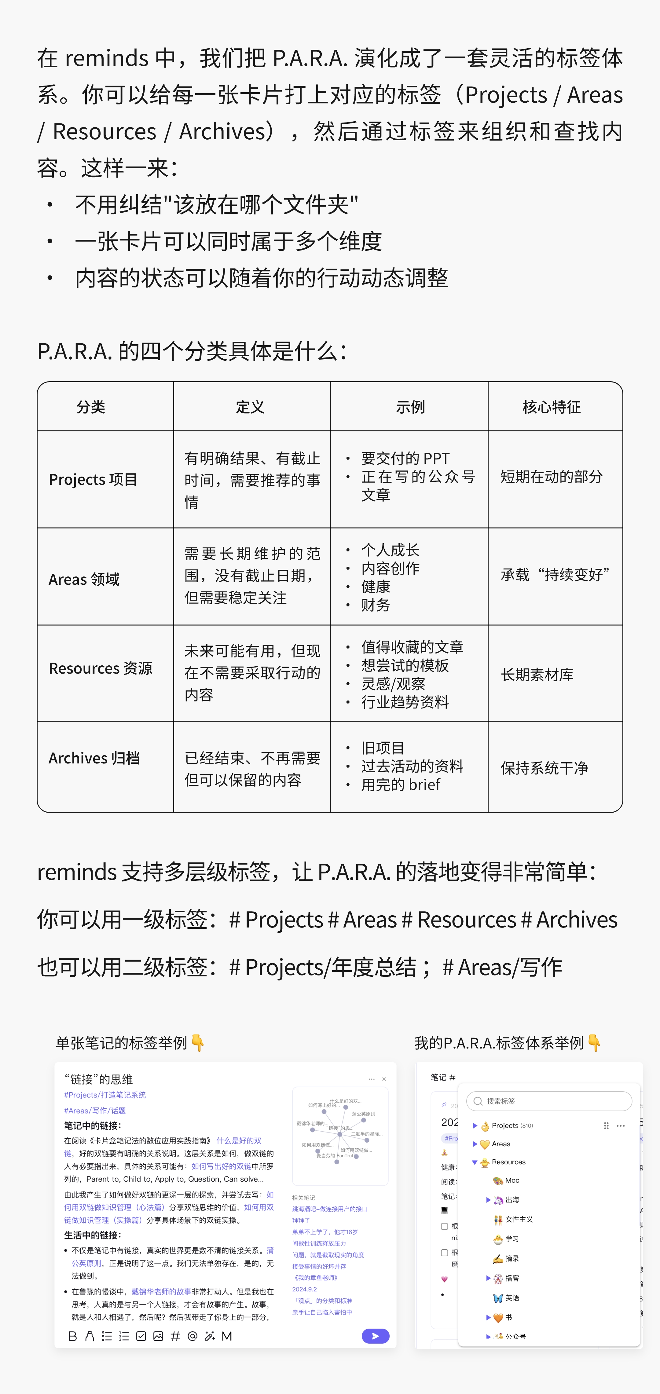 - 如何在 reminds 中实践 P.A.R.A. 👇