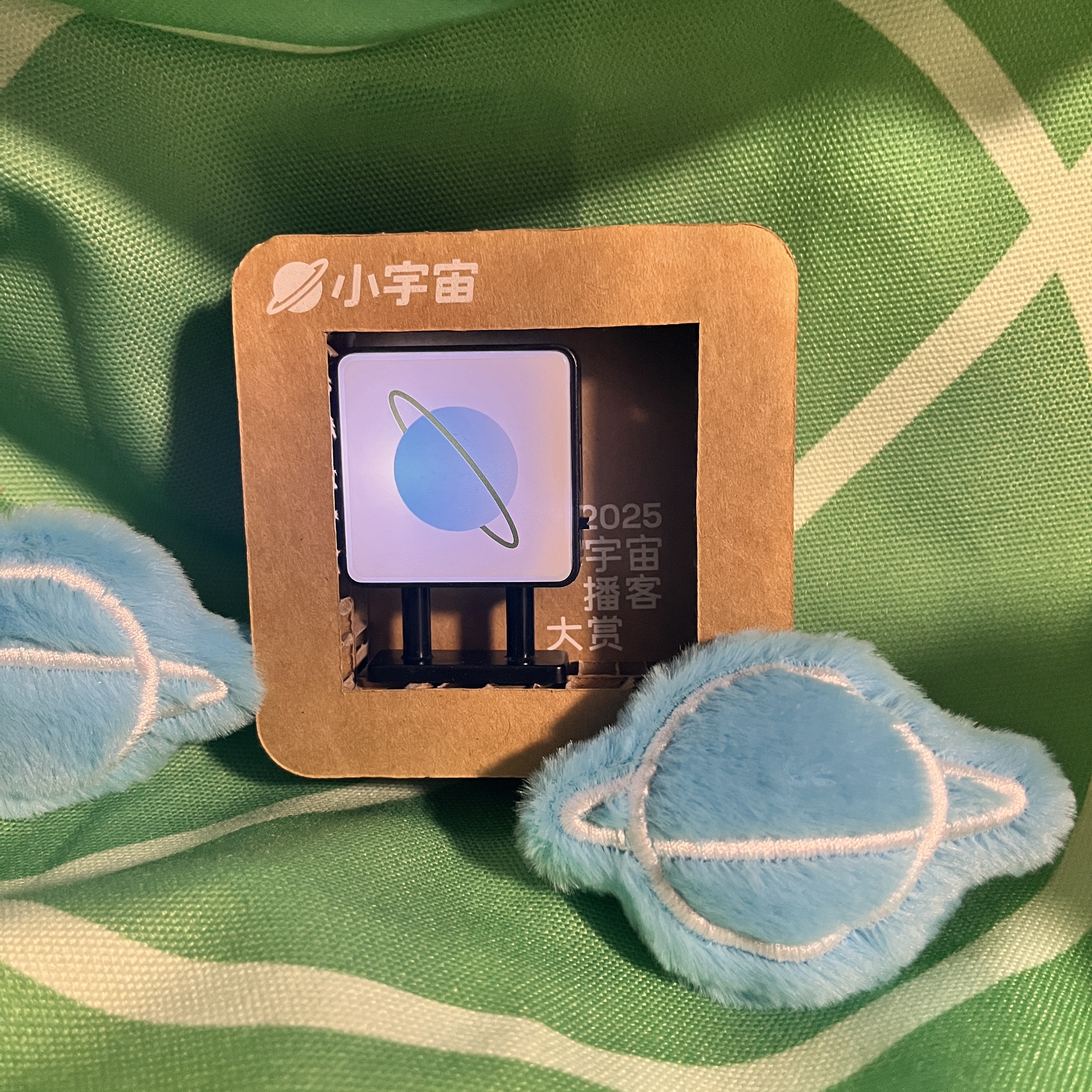 评论本期播客,选择3位听友赠送小宇宙的精美周边,两个毛茸茸的别针,还有一个是刚刚结束的「2025小宇宙播客大赏」伴手礼,忍痛割爱。