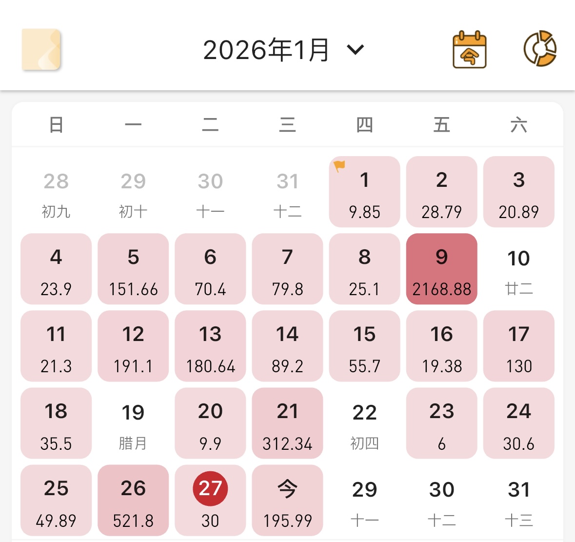 睡了一整个白天2026.1.27 周二 0~8°C ☀️ 晴00:06 昼夜颠倒02:10 别对我动心 1-14集12:20 应不应该默默无闻的帮助他人16:37 买东西经常会分散注意力忘记自己的初心19:19 我不能“随心所欲”地花钱了23:45 我和apple和平相处✅记账打卡