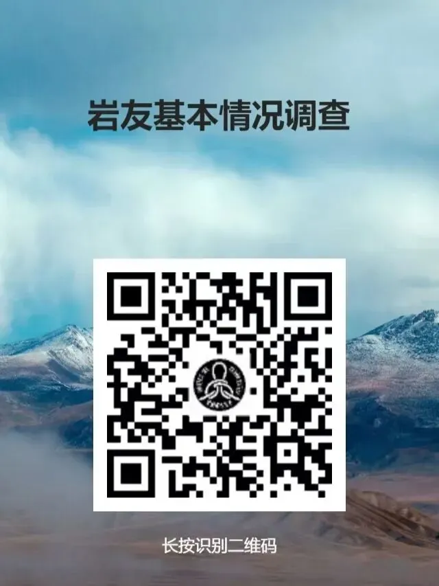 由于攀岩运动近些年在国内发展火热,现针对攀岩运动开展岩友基本情况调查。本次调查问卷由《中国攀登事故报告》项目组发起,旨在了解国内攀岩爱好者的基本情况和攀爬特点,并与国内攀岩事故数据进行对比,综合分析结果将发布在《中国攀登事故报告》中,免费分享给全部攀岩者。