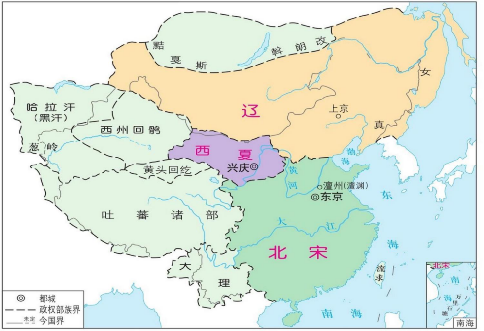 - **辽国**:辽兴宗时宗室与外戚争权,部落叛乱频发,1044年河曲之战败于西夏后,更无精力攻夏。三方制衡使西夏崛起。