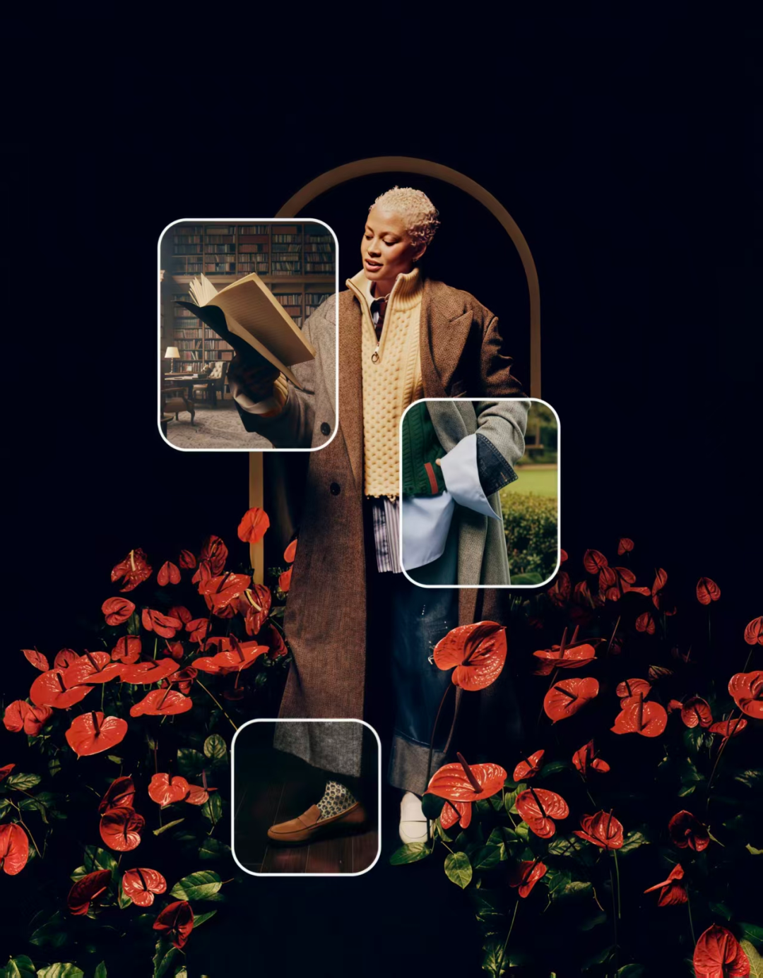 Pinterest表示:现在的Z世代(Gen Z)和千禧一代(Millennials)都喜欢穿宽松的高领毛衣(oversized turtlenecks)、复古的西装外套(vintage blazers)以及邮差包(messenger satchels)展现他们内心深处的主角感(protagonist)。