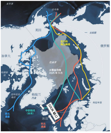 北极航道、GIUK缺口示意图