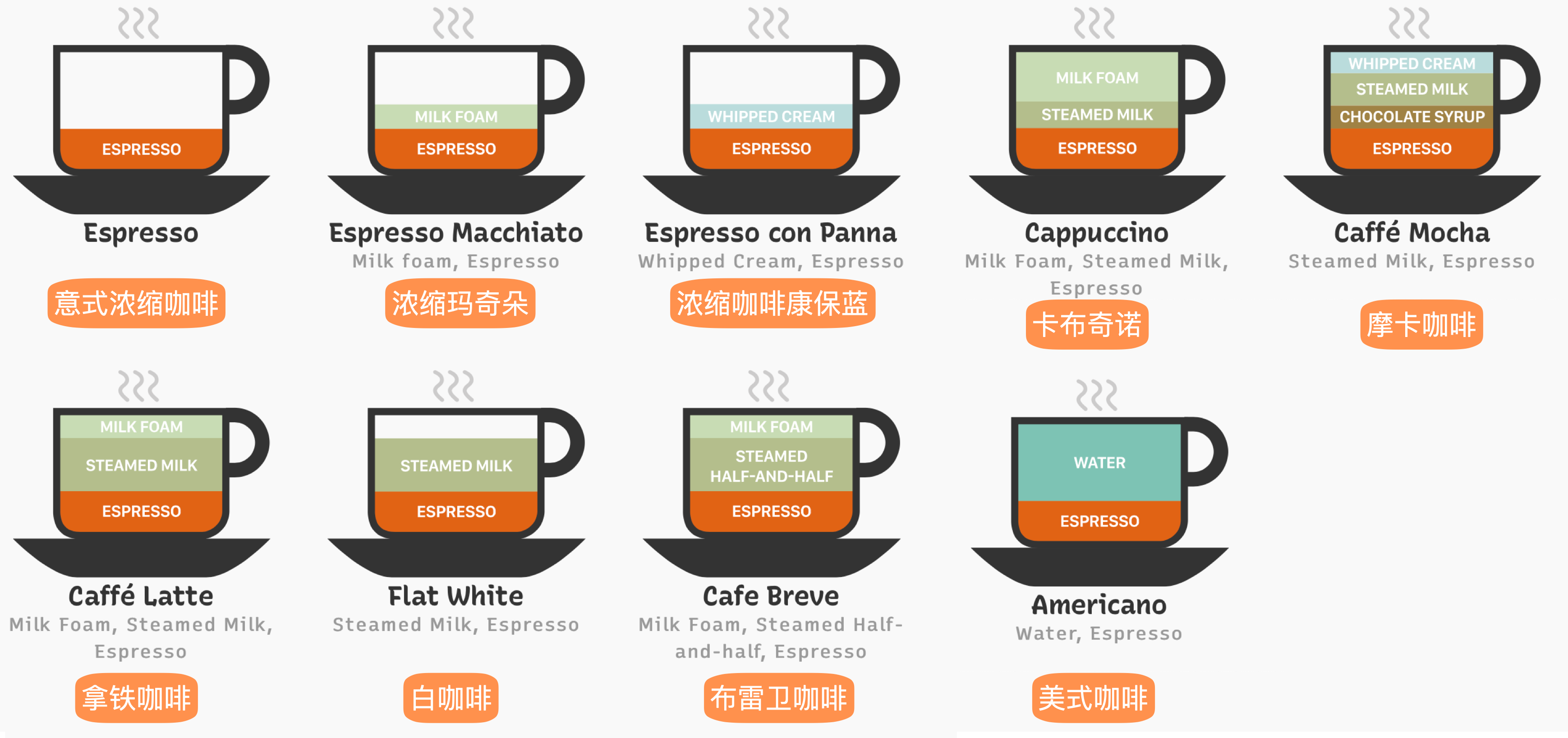 - 堆叠(Stacked):解决结构问题。用**“咖啡”**做比喻,拿铁是浓缩、牛奶、奶泡的堆叠,颜色代表原料,高度代表比例。