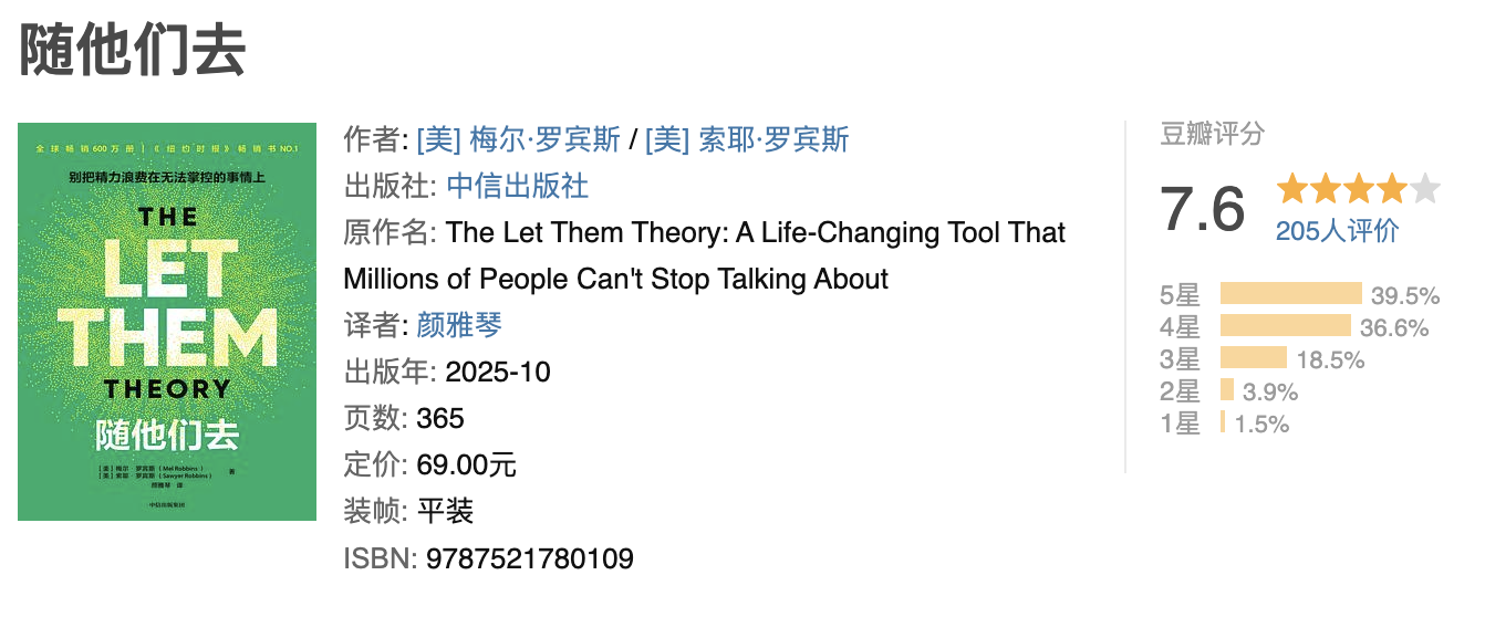 《随他们去》是我分享的第一本书。这位藤校学霸曾在41岁跌入人生谷底,54岁蜕变成全球最受欢迎、拥有2800万粉丝的播客主的故事,相信会给正处在中年的我们很大的力量与启示。
