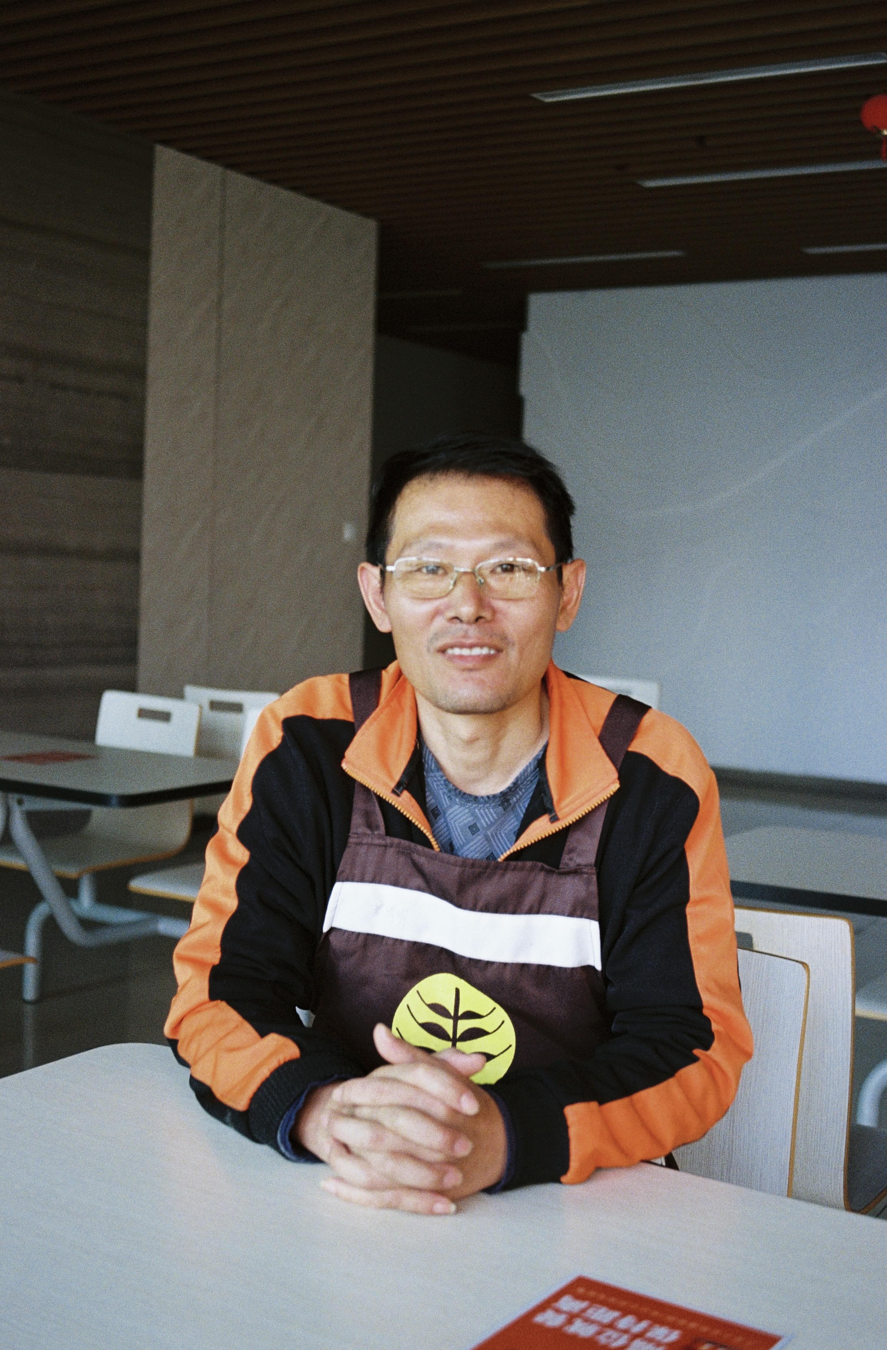 我们这次见面是在南京江北新区一个园区的食堂,他在这里打零工,他笑盈盈地,和我握手前有些拘谨地在围裙上抹了两下,和上次见面给我的感觉没有变化。