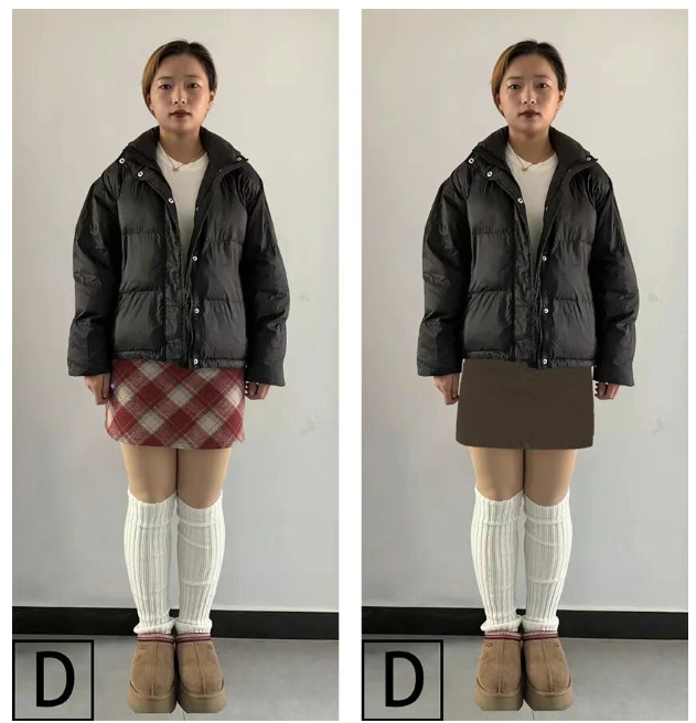图D的袜套把下半身切割成好几个色块