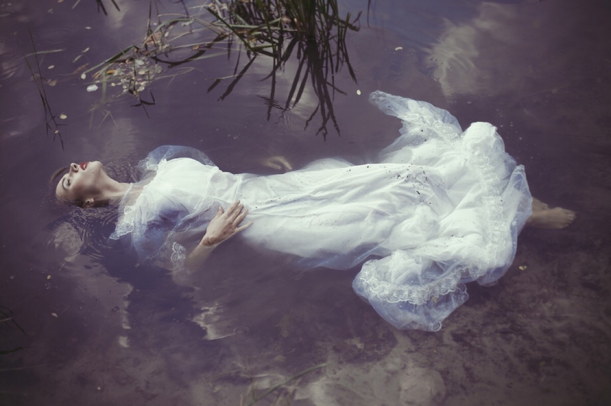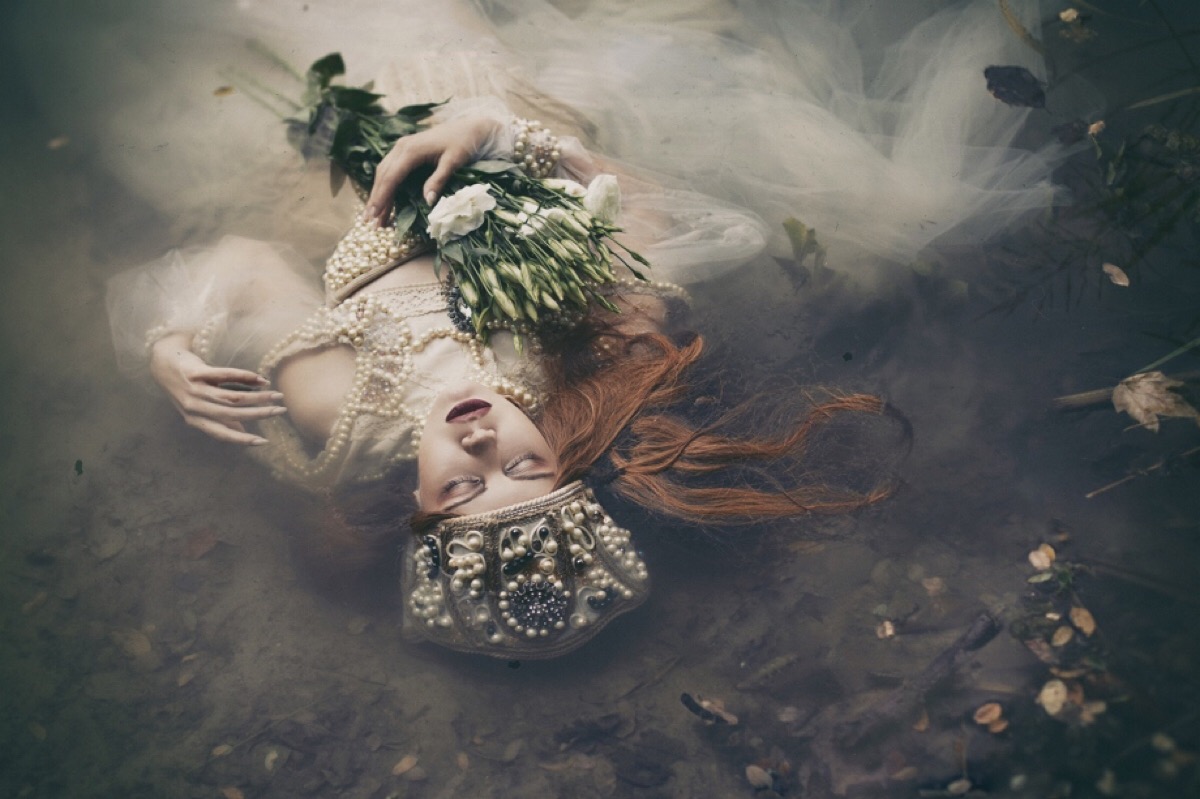 早期拍摄系列作品《睡莲少女》时,Dorota Górecka为了还原水面的朦胧质感,她特意在自家浴缸里铺满白色花瓣与蓝色丝绸,用手机灯光从底部打光,却始终达不到理想效果。直到一个雨后的清晨,她发现阳台的积水倒映着天空的灰蓝,光影斑驳如梦幻,当即让模特躺在积水旁,以天空为背景,用大光圈捕捉水面与人物的叠影,这才有了那张令她声名鹊起的作品——画面中的少女闭着双眼,发丝浸在微光里,仿佛从拉斐尔前派的画作中走出来,在现实与梦幻的边界安然沉眠。