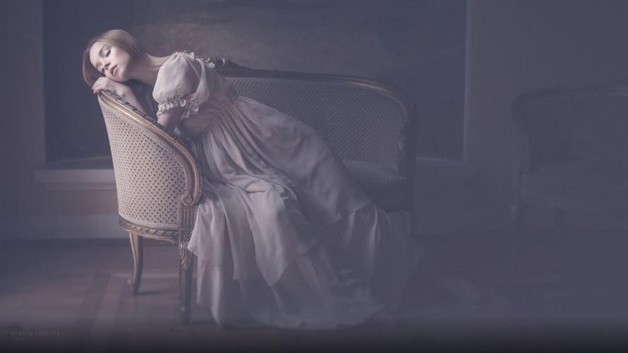不得不说,Dorota Górecka深谙古典美学的平衡之道,常用三分法构图,将人物置于三分线交点,让主体醒目却不突兀。她还喜欢用斜线元素增加画面动感,如复古沙发的扶手、弯曲的树枝等,再用简洁背景留白,如同古典画作的空灵意境,给观众留下想象空间。