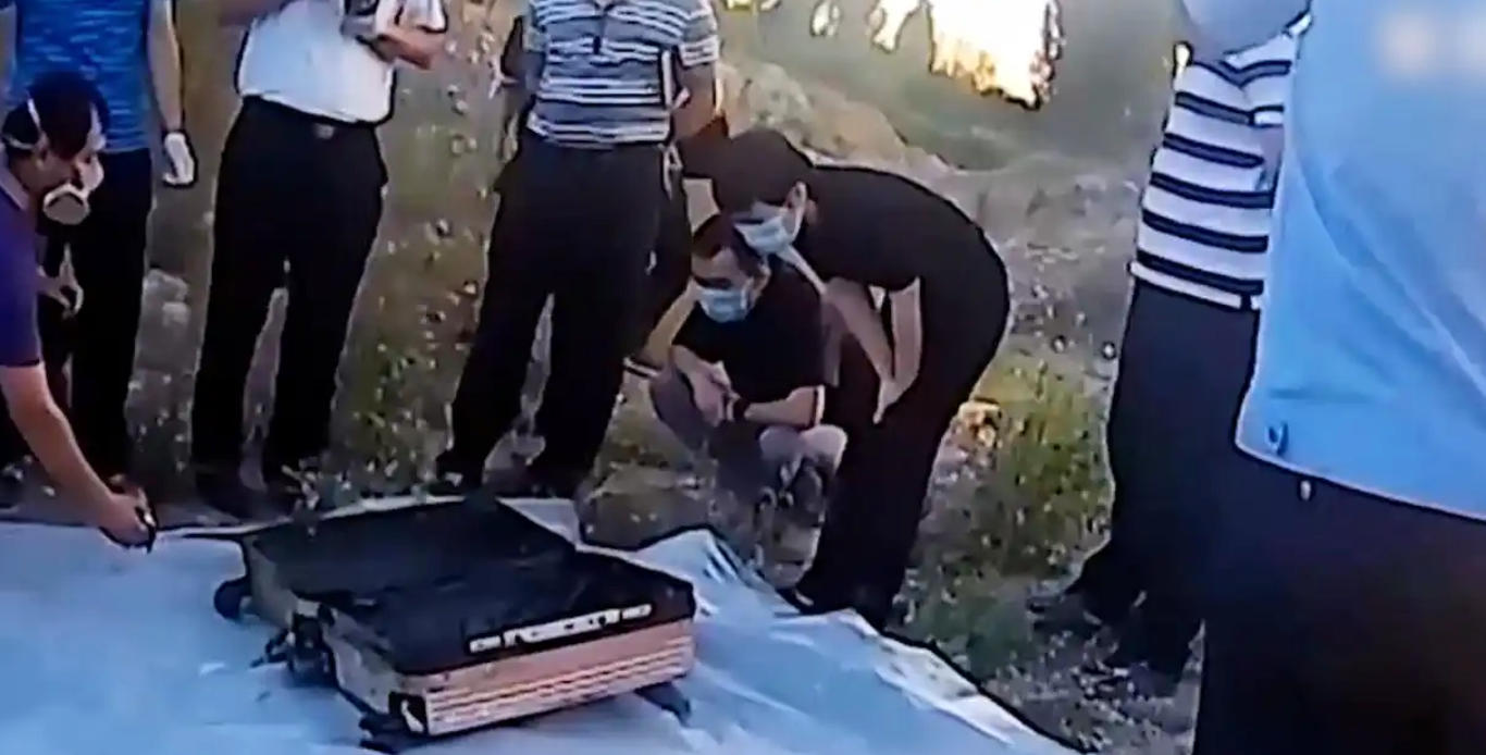 2018年5月,山东临朐县石河上漂着一个玫瑰金色的行李箱。