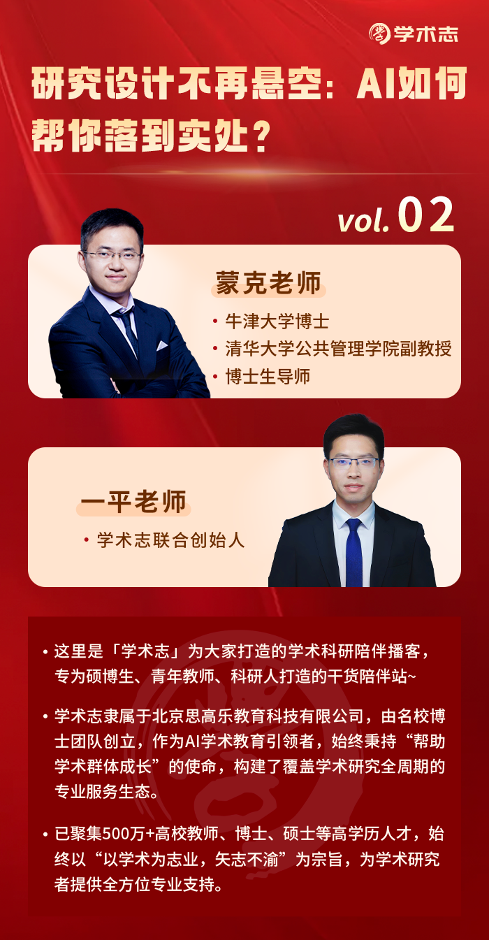无论你是正在打磨论文的硕博生、寻求学术突破的青年学者,还是想在 AI 时代保持核心竞争力的研究者,这期干货满满的对谈都能为你答疑解惑、带来全新启发!戴好耳机,一起解锁研究与人生的双重成长密码~