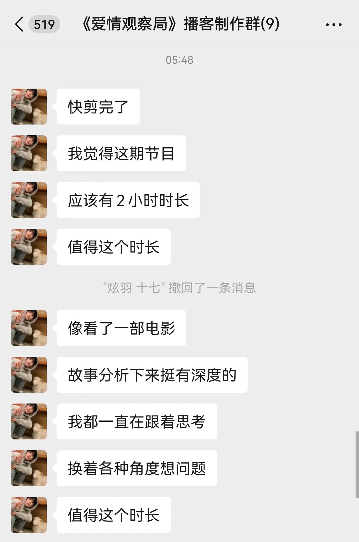 (当我在担心这期时长会不会太长,让十七多做一些精剪的时候,他听下来说:“这期节目值得这个时长”)前1个小时在讲听友的故事,后1个小时是非常深度的情感分析,我们还有分享如何向内求,如何让自己成长的更好,如果你愿意给一点耐心给这期节目,相信你一定会从中有所收获的。